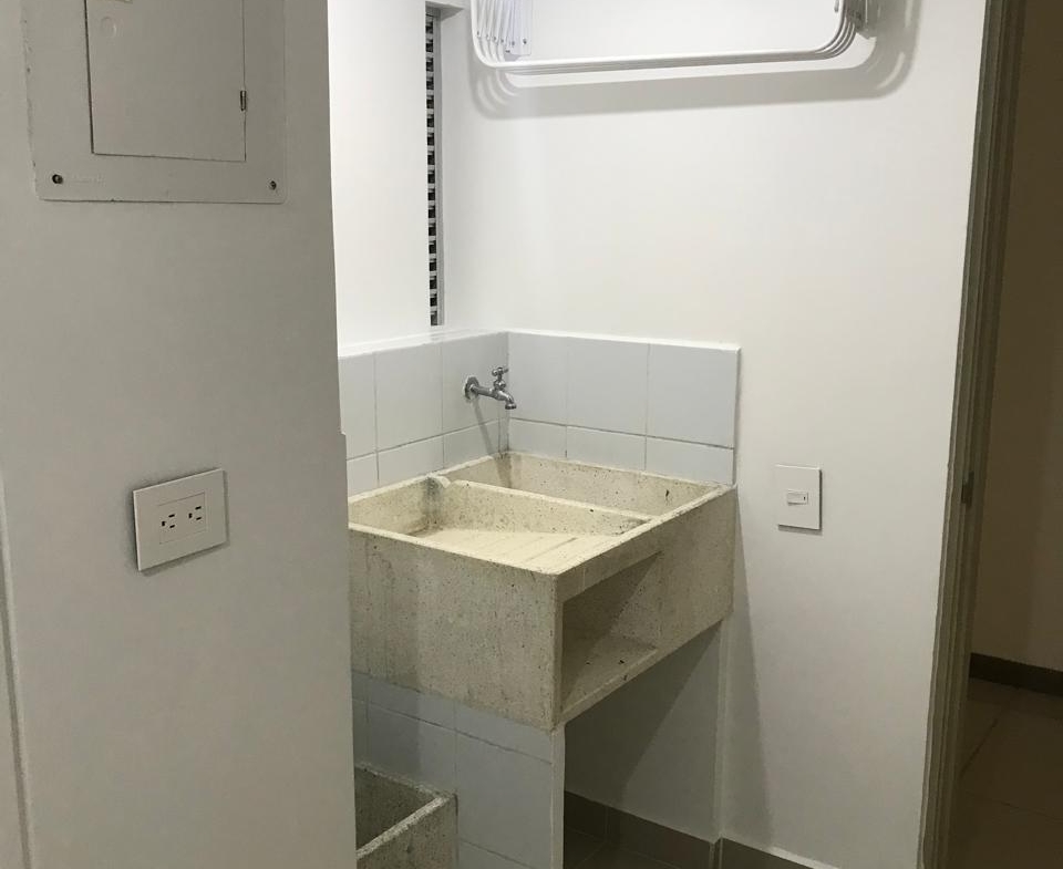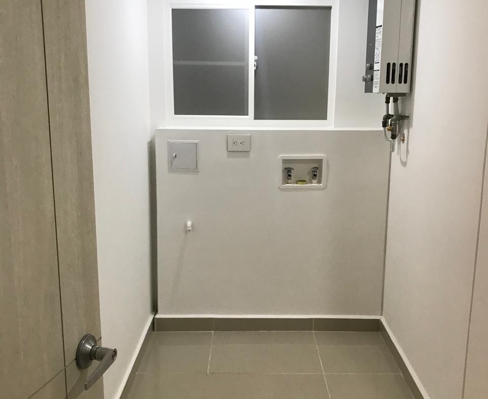 Cocina integral en L, Zona de oficios independiente (lavadero + tendedero), Alcoba de servicio con baño