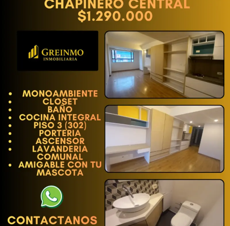 EN ARRIENDO APARTAESTUDIO EN AV. CARACAS- CHAPINERO CENTRAL El cual consta de 28M2, espacio monoambiente, 1 baño con calentador, closet, escritorio, vista externa, vidrios insonorizados, cocina integral, porteria, lavandería comunal, ascensor, espacios modernos, ambiente agradable y acogedor. Para mas informacion, contactanos.