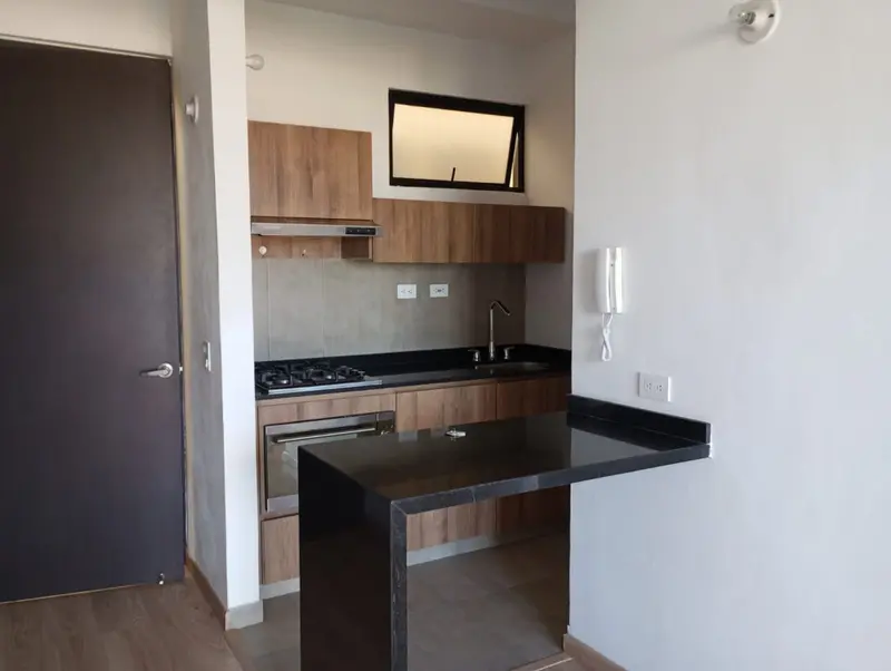 Excelente apartaestudio tipo loft (un solo ambiente) ubicado en un tercer piso, vista exterior, un closet, un baño, cocina integral a gas, zona de lavandería, calentador eléctrico, un parqueadero cubierto, deposito, el edificio cuenta con ascensor, zona de niños, terraza BBQ y sauna.
