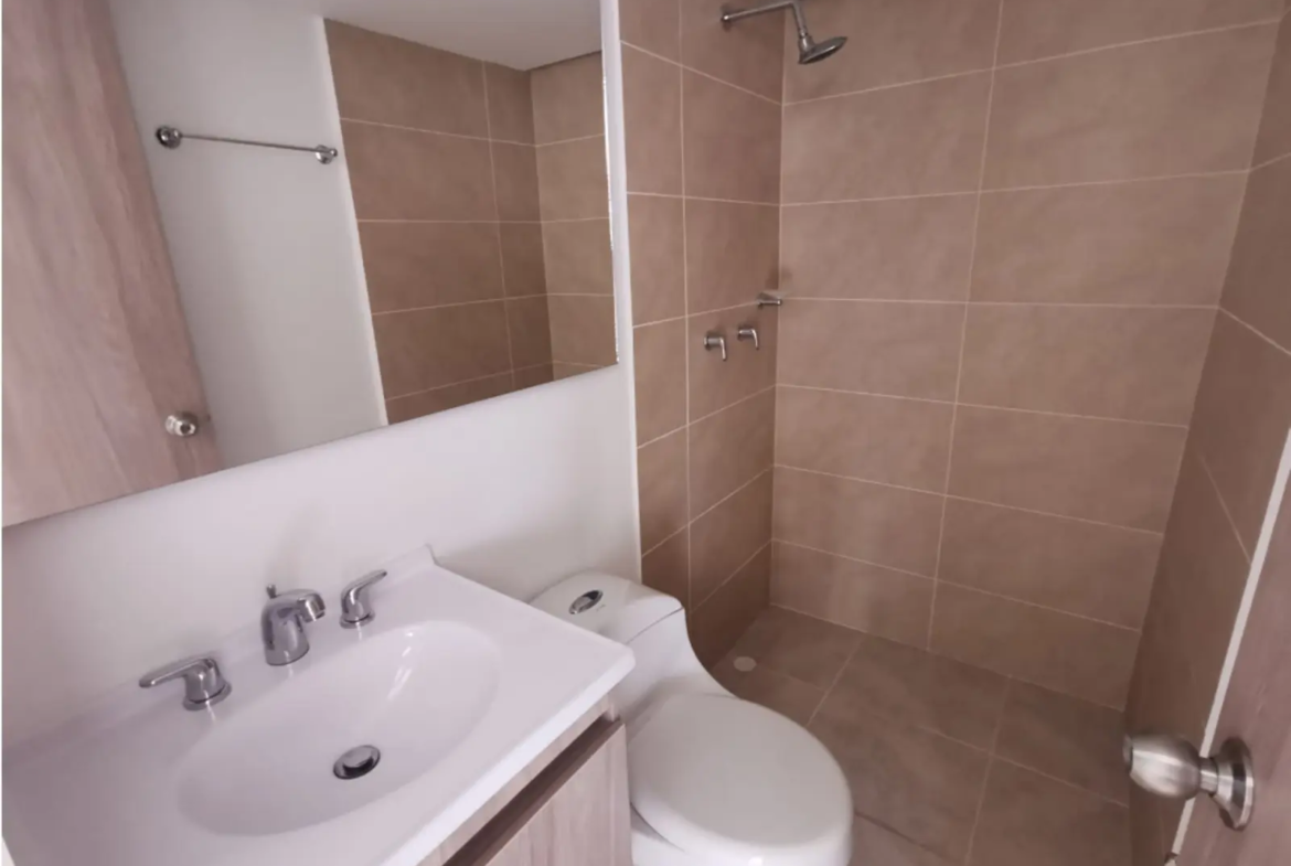 Área de 63mts, consta de 3 alcobas cada una con closet, 2 baños, sala comedor, cocina integral, red de gas, piso en ceramica, zona de ropas, calentador, parqueadero cubierto, cuarto útil, balcón.
