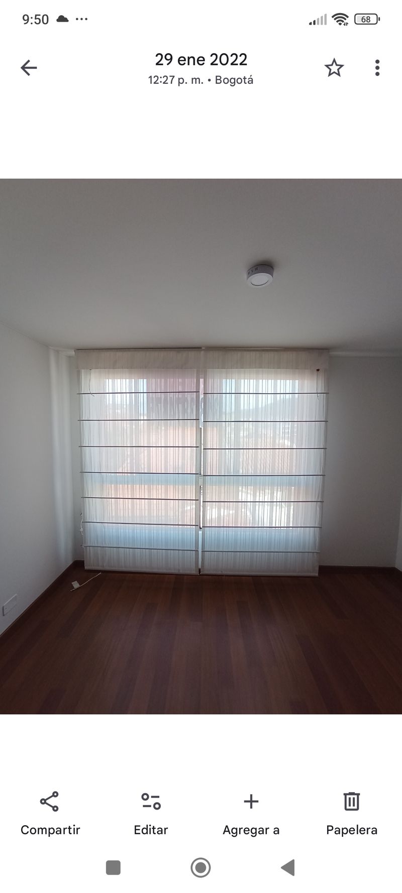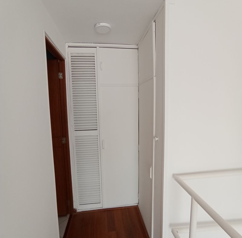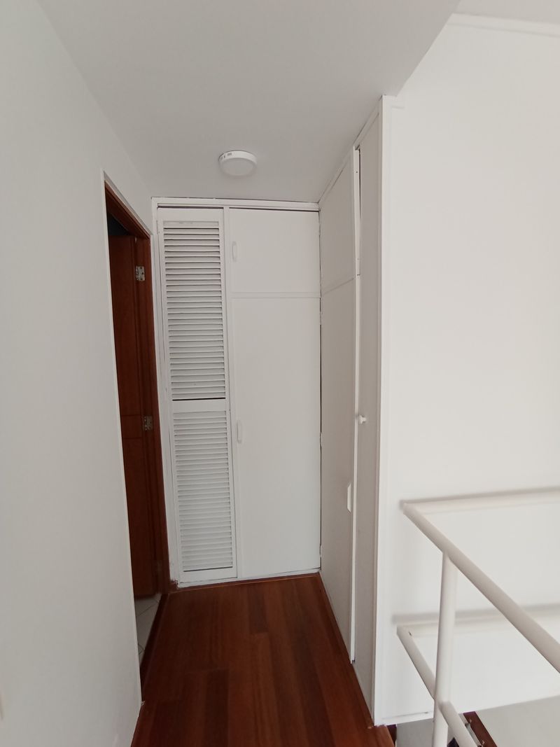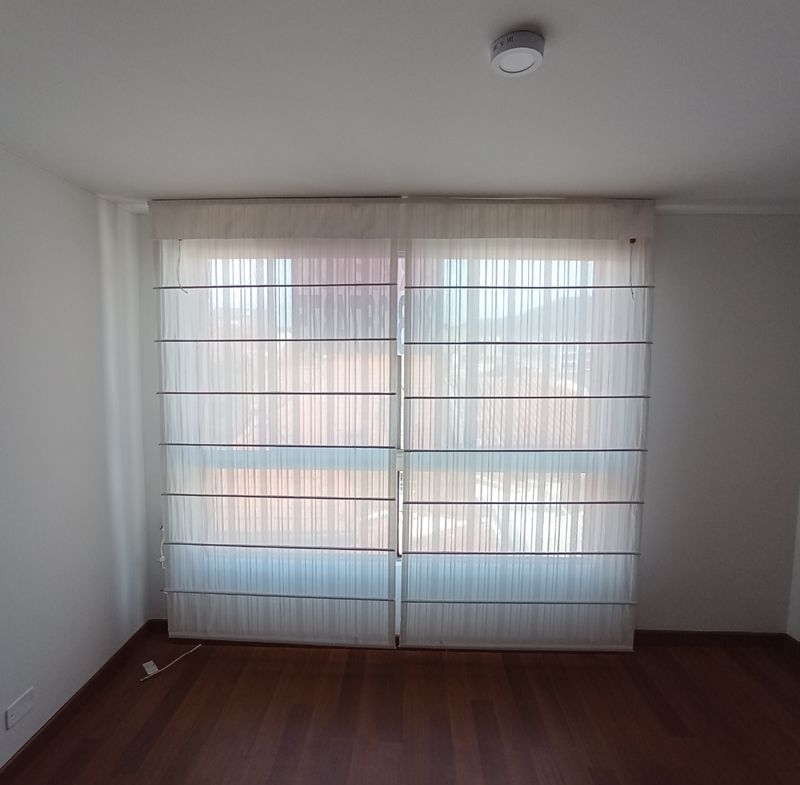 Segunda planta. Habitación cortinas tipo Romano, piso en melamina color café, closet, baño con ducha eléctrica.