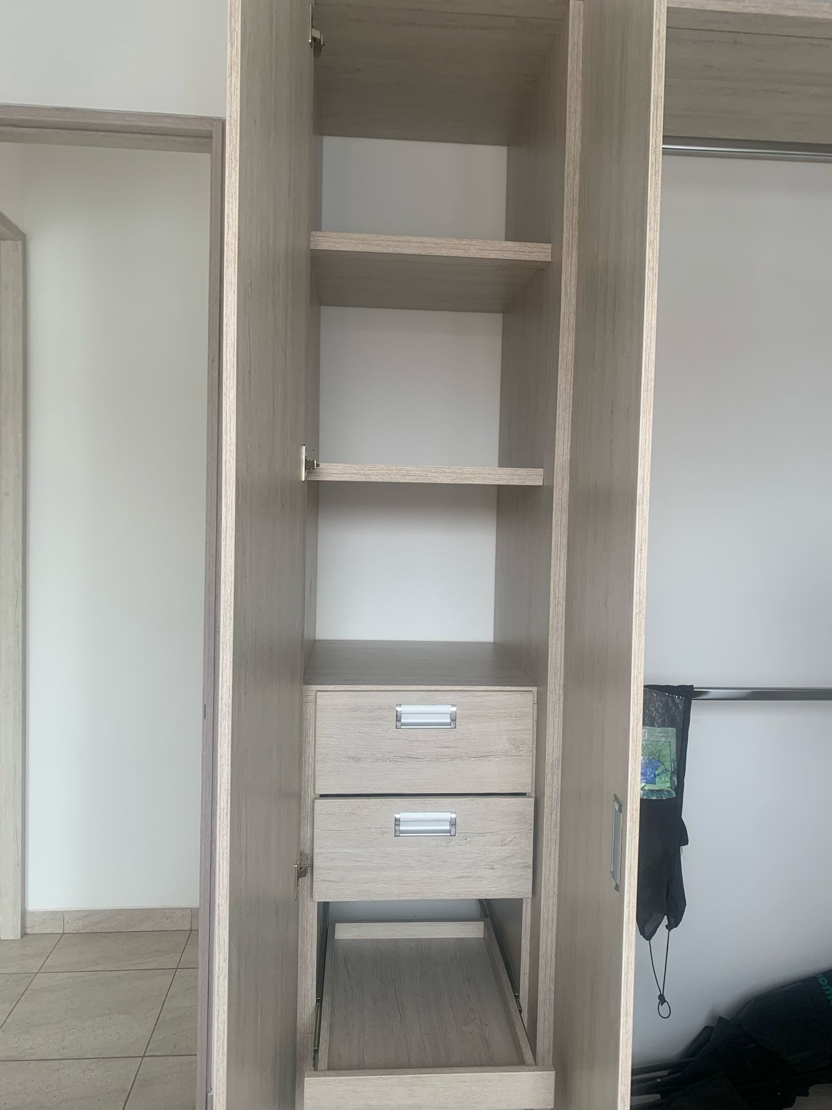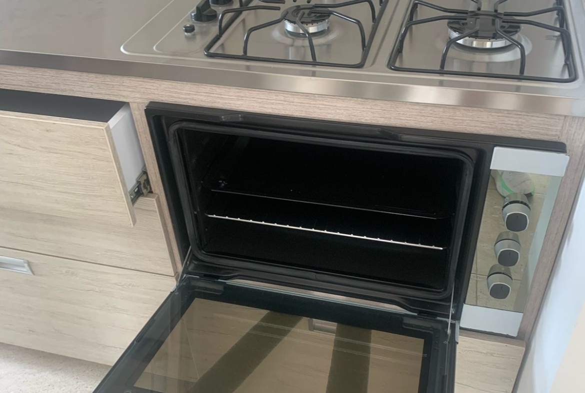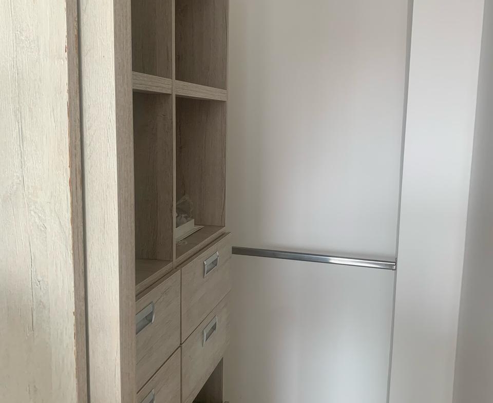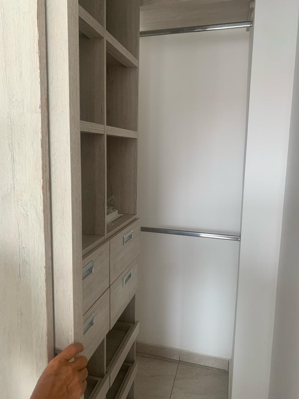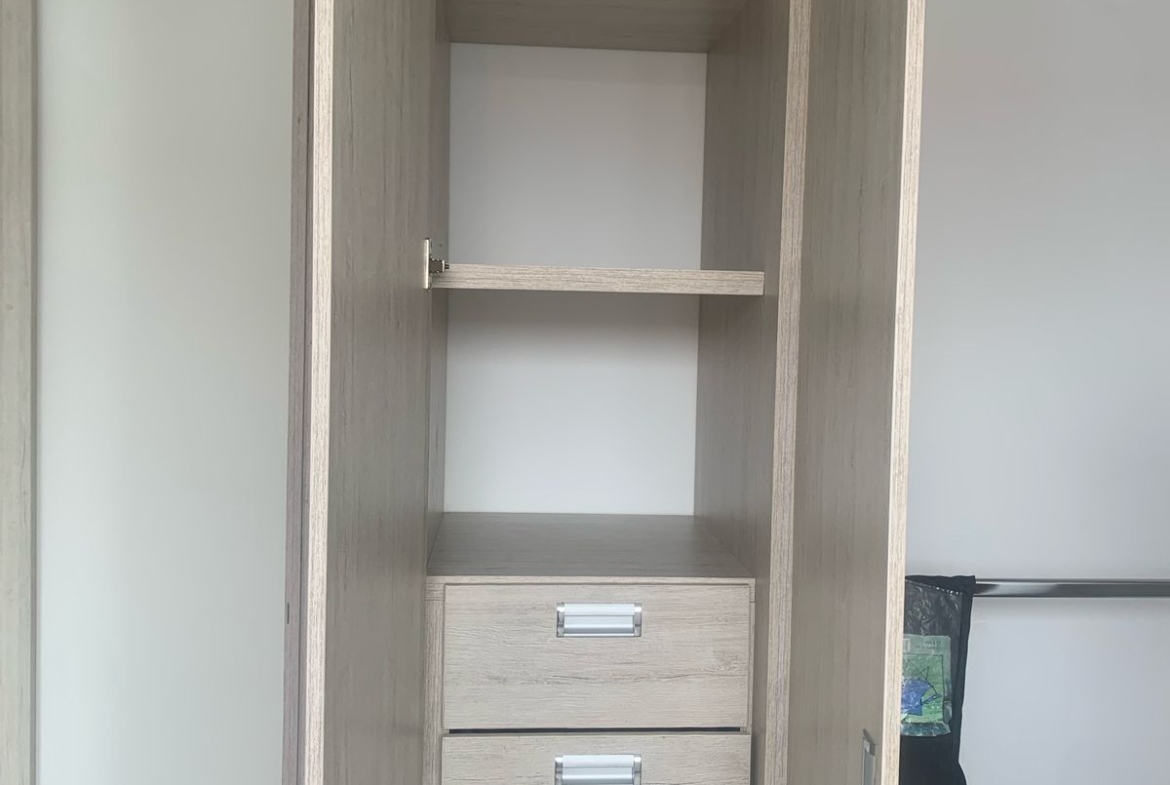 Sala comedor, balcón, alcoba principal con baño y vestier, segunda habitación con closet, baños social, estudio o tercera habitación, cocina con horno y gabinetes, zona de servicio y ropas.