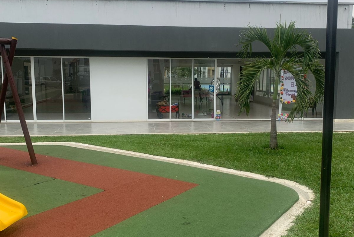 El conjunto cuenta con piscina adultos y niños, 3 salones para eventos y juegos, cancha múltiple, recepción, portería, ascensor, parqueadero de visitantes.