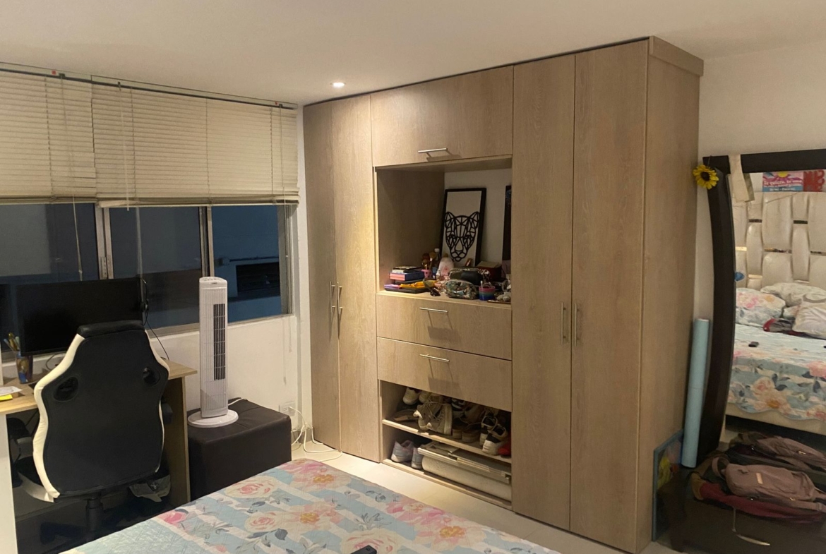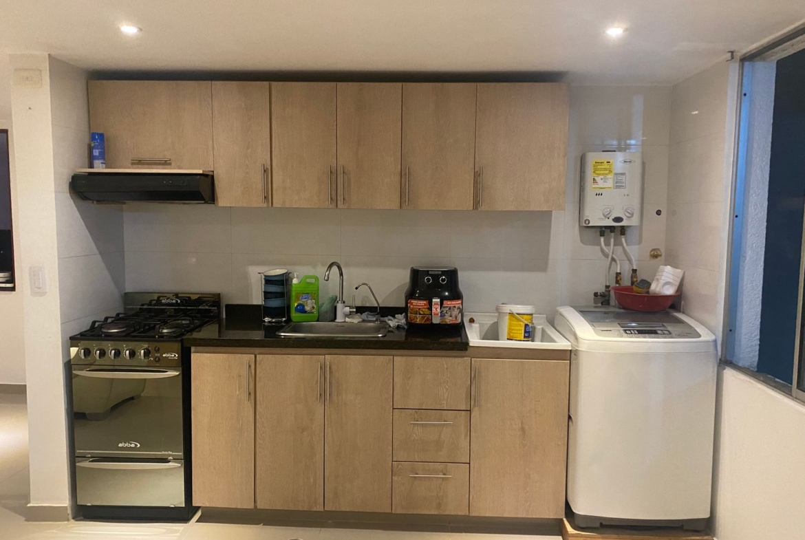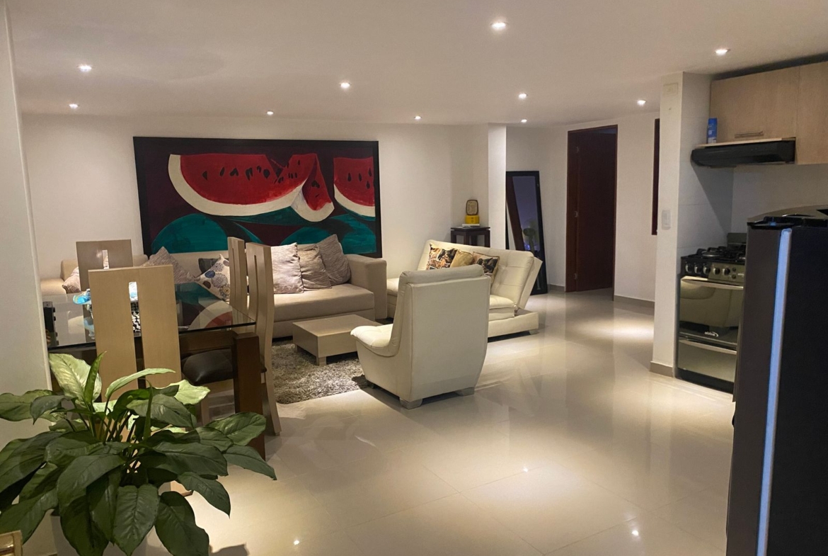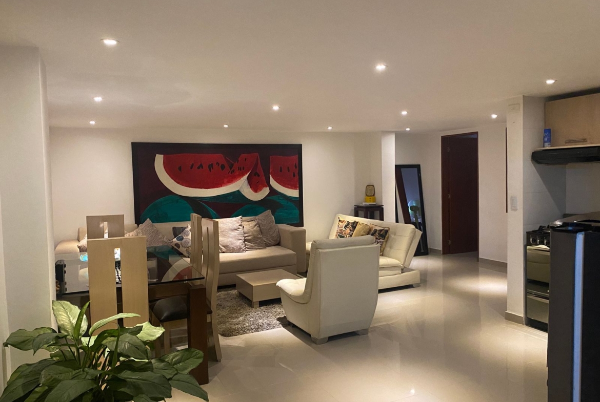 El apartamento cuenta con 63 m² de área, completamente remodelado, con espacios cómodos y bien distribuidos. Dispone de sala comedor, cocina tipo americana, dos habitaciones y un baño.