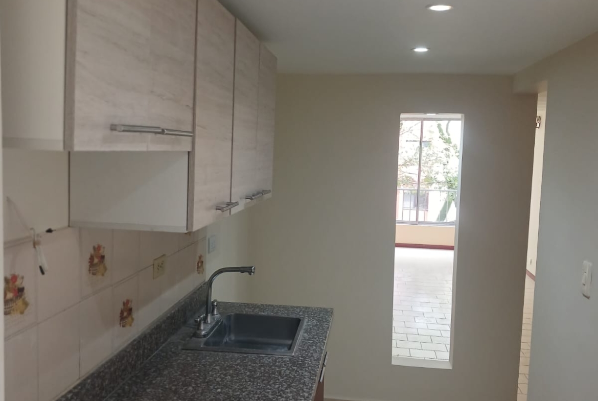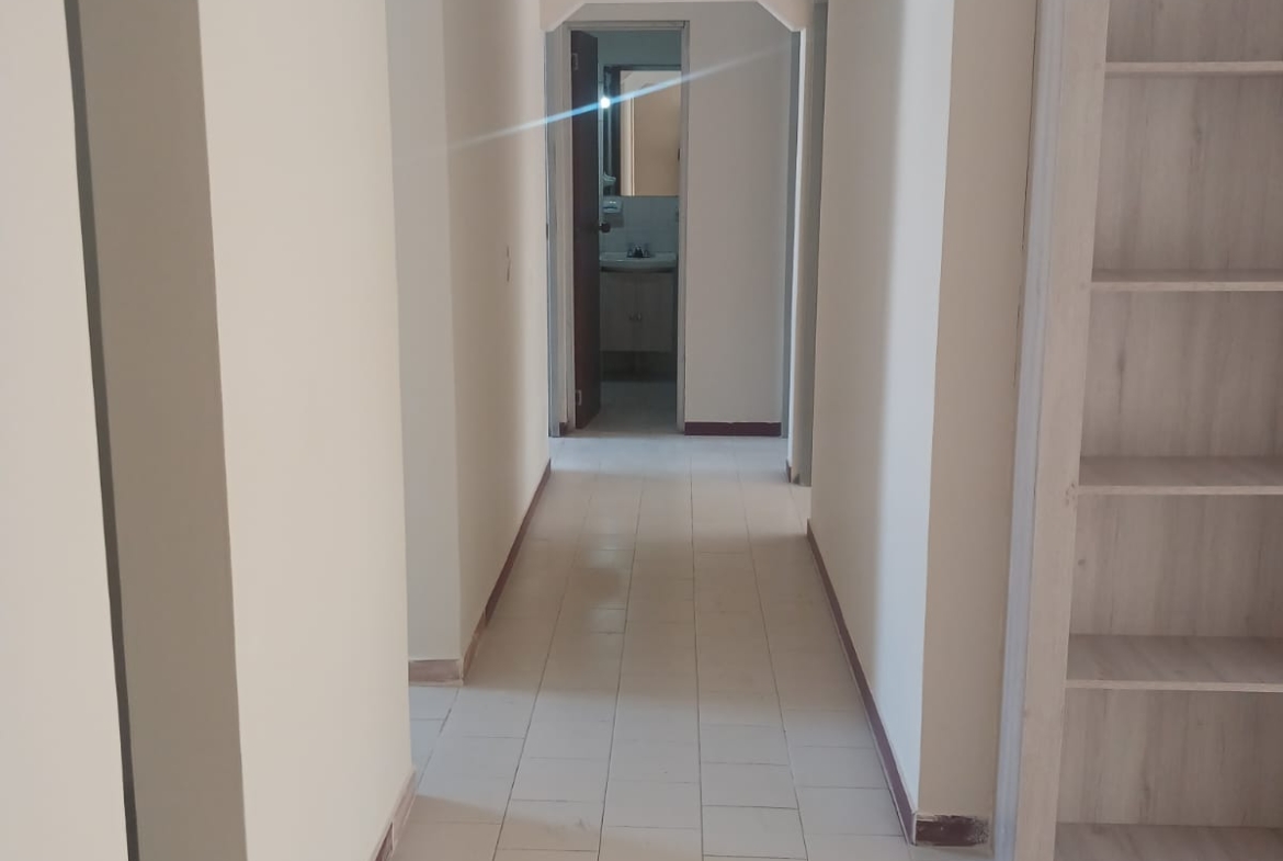 Sala, comedor, estudio, tres alcobas con closet, baño en alcoba principal, baño social, cocina, zona de ropas, buenos acabados.