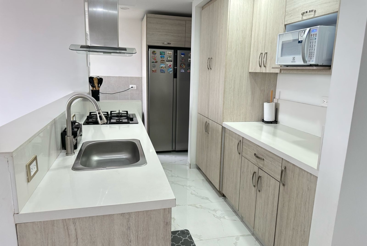 ¡Oportunidad! única bonito y acogedor apto de 90ms 3 habitaciones amplias y luminosas,2 baños modernos y funcionales, sala comedor con espacio para disfrutar en familia o con amigos cocina tipo americana, ideal para preparar comidas y compartir momentos con seres queridos, balcón parqueadero doble para mayor comodidad.