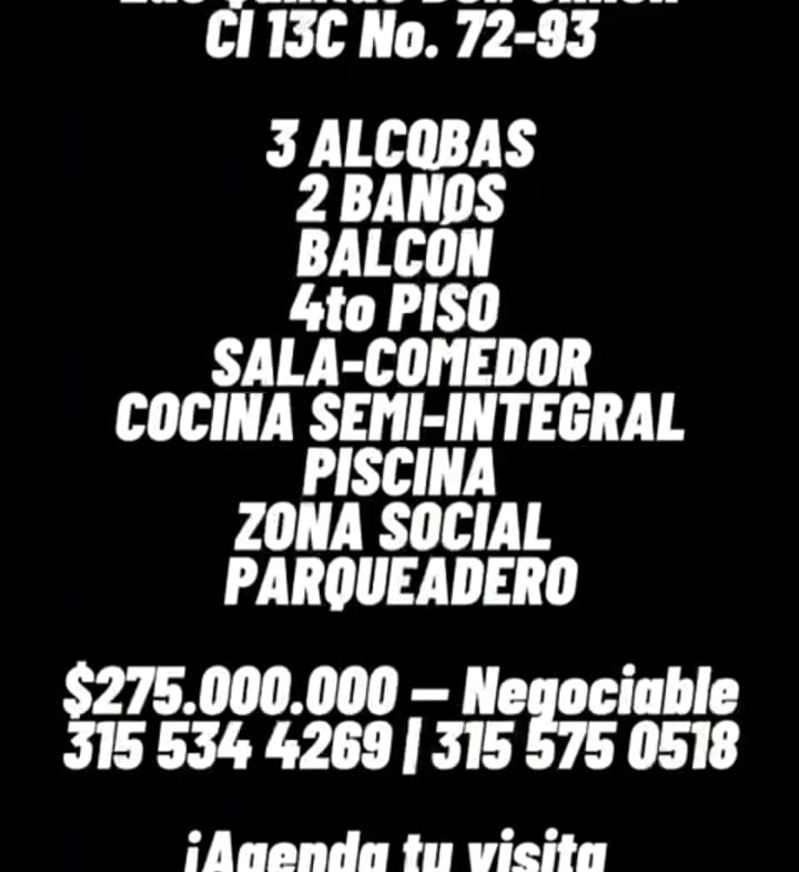 SE VENDE APARTAMENTO – UNIDAD BOSQUES QUINTAS DE DON SIMÓN
