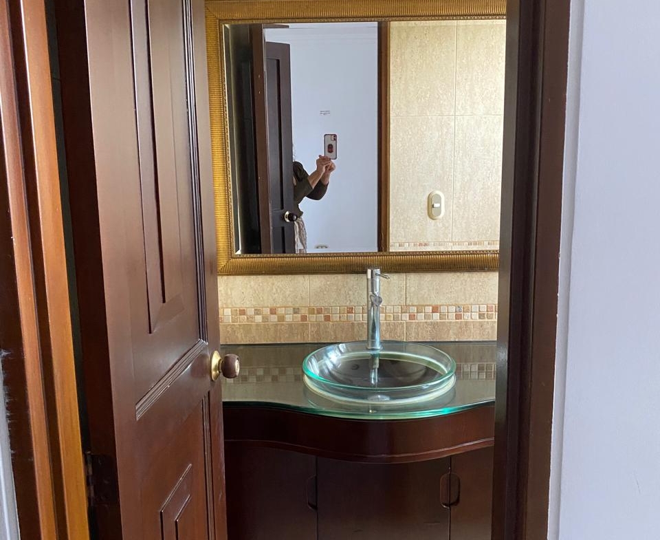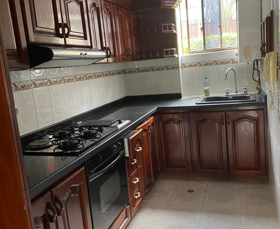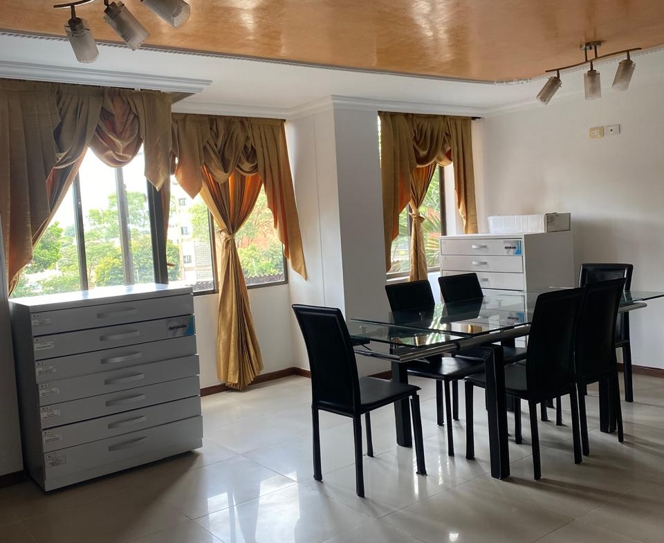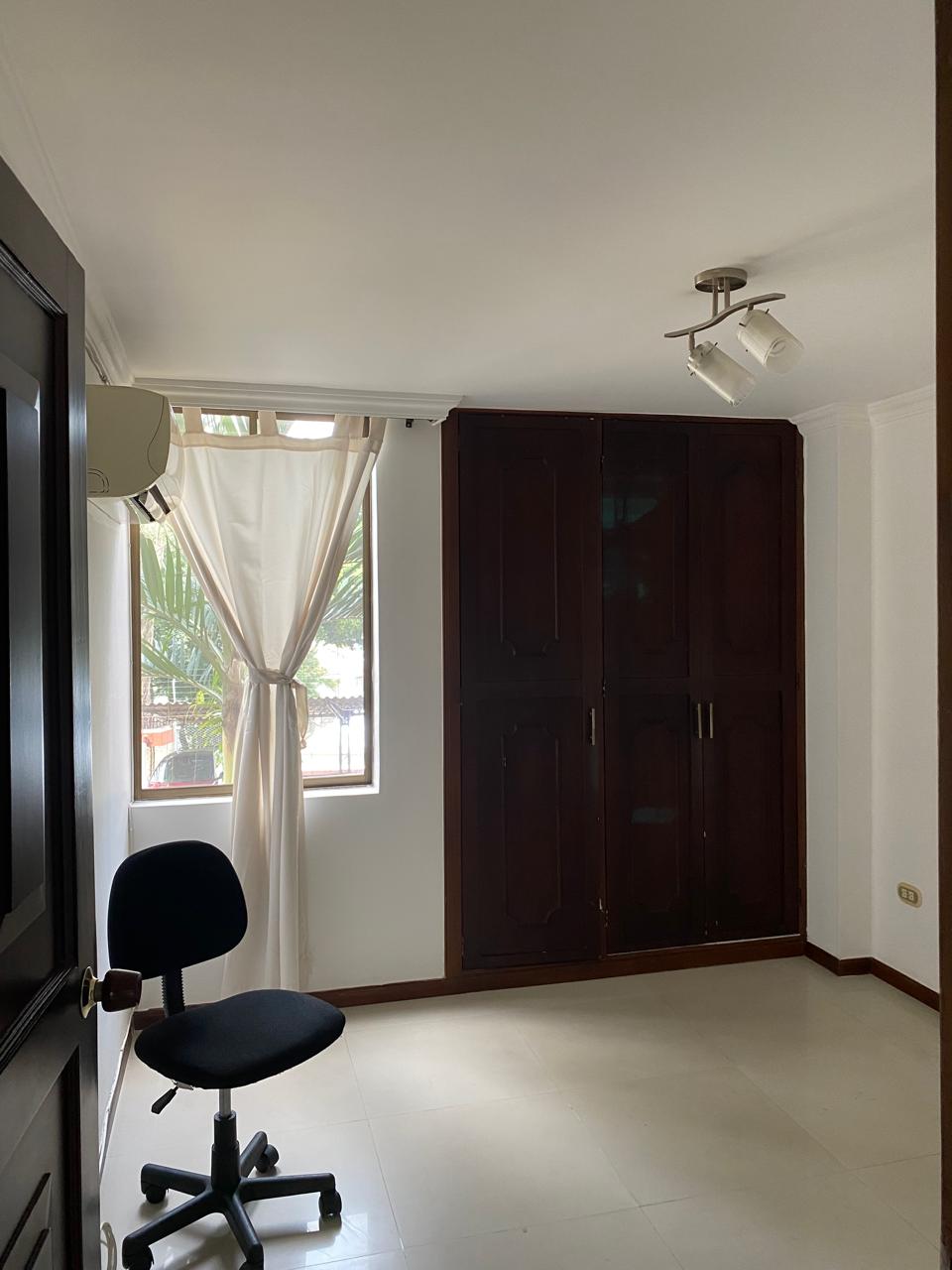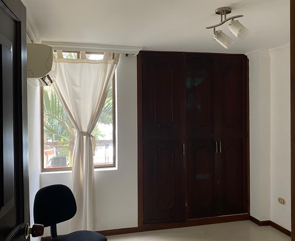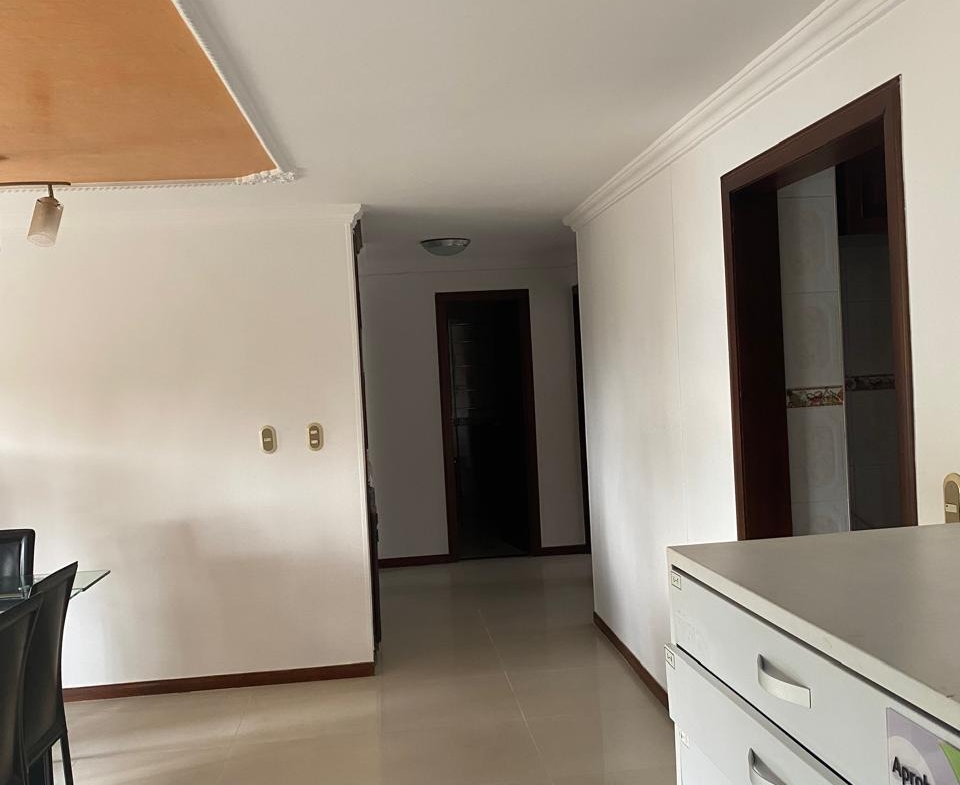 Sala comedor amplia, repiseros de pared a pared, Ventanas con vista a la ciudad por ambos lados, 3 habitaciones, la principal con baño, 1 baño social, 1 cuarto de empleada con baño, lavadero de ropas con instalación de lavadora, cocina integral en madera fina, y puerta giratoria, espacio para la nevera, mesón en mármol y barra para servir en madera, aire acondicionado, calentador de agua, parqueadero para 1 vehículo y para visitantes.
