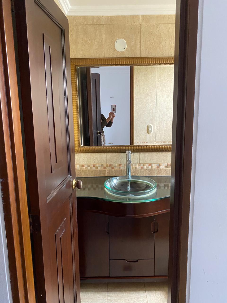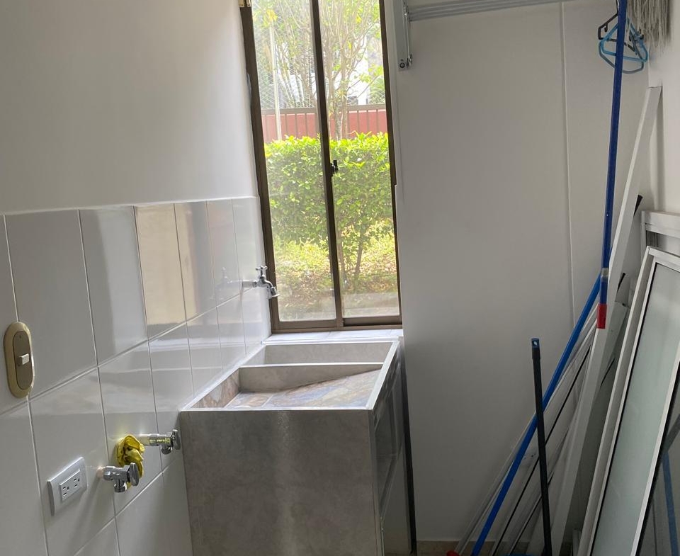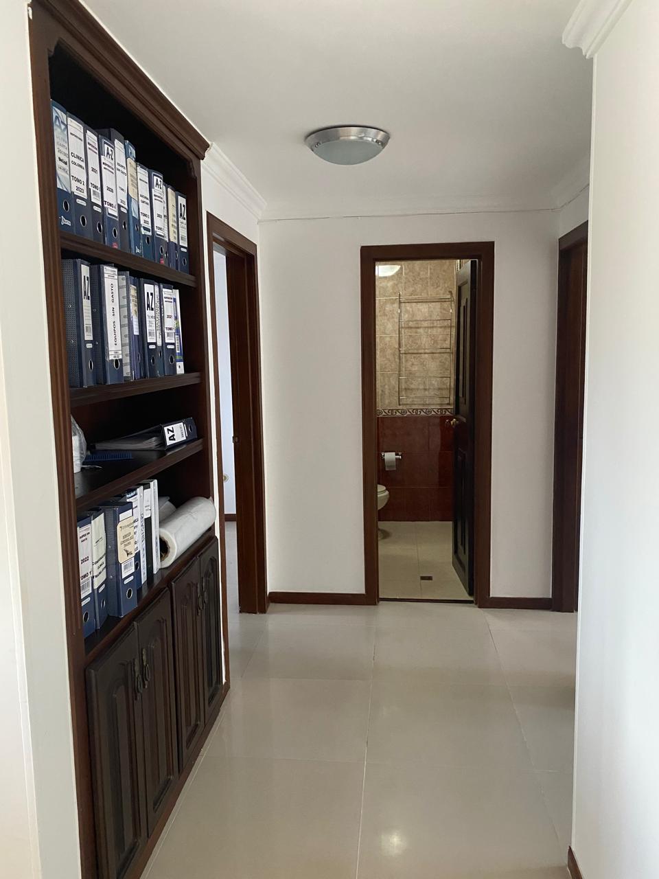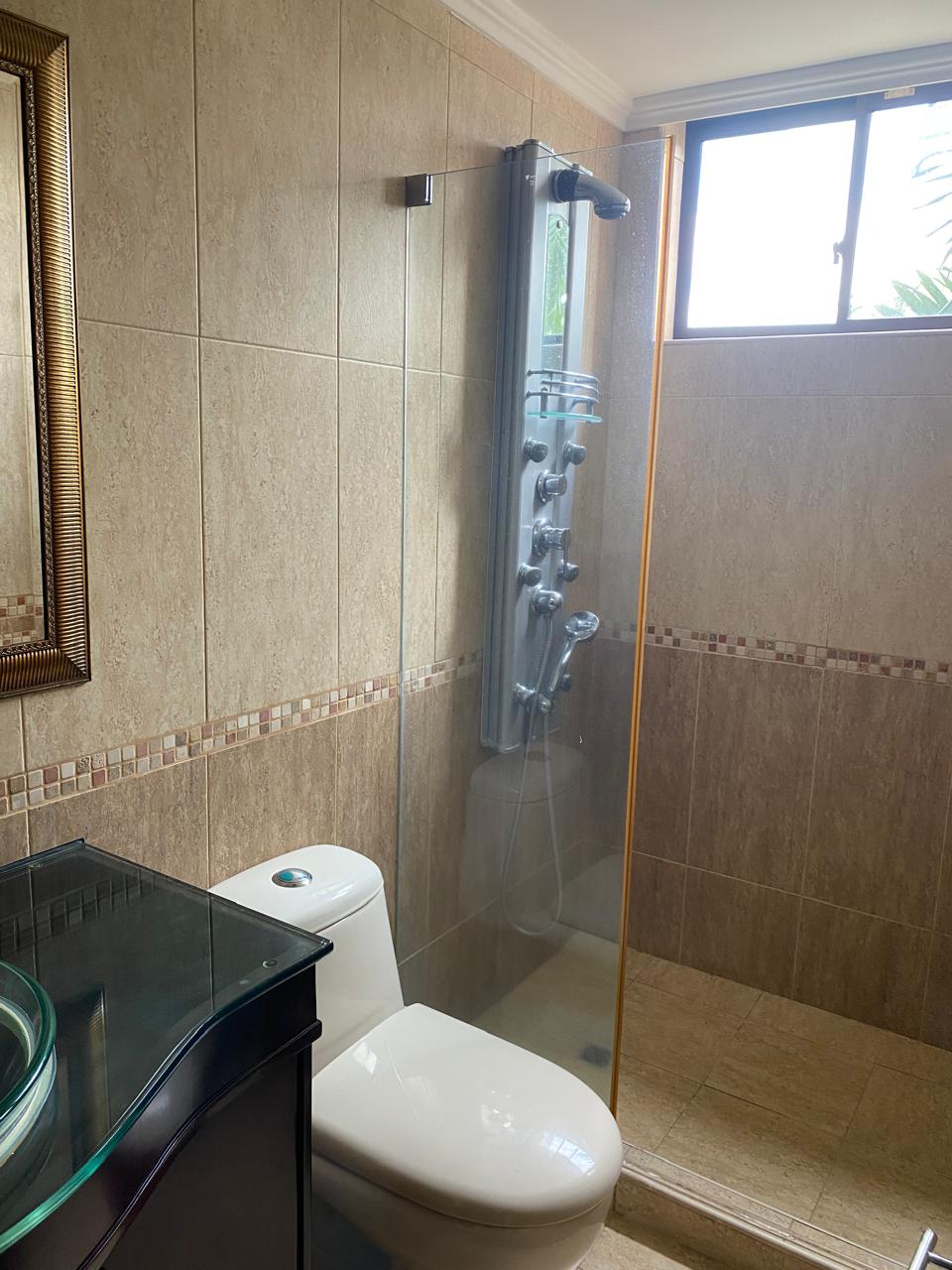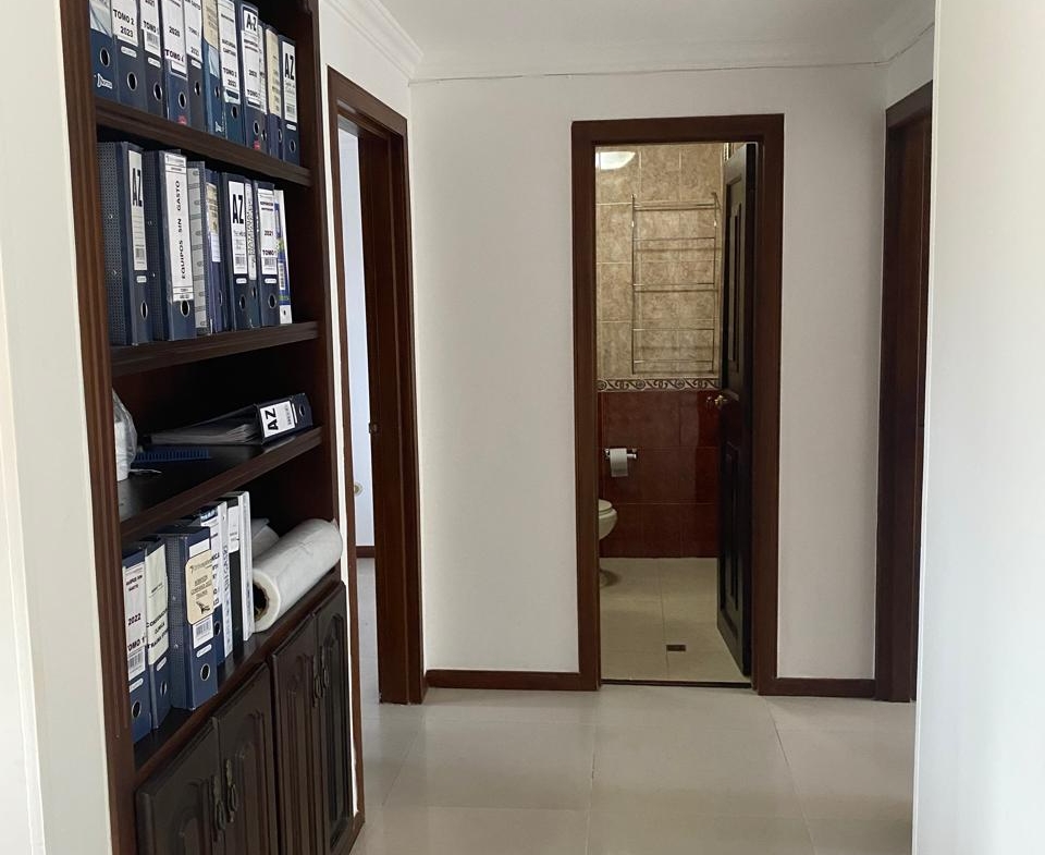 Sala comedor amplia, repiseros de pared a pared, Ventanas con vista a la ciudad por ambos lados, 3 habitaciones, la principal con baño, 1 baño social, 1 cuarto de empleada con baño, lavadero de ropas con instalación de lavadora, cocina integral en madera fina, y puerta giratoria, espacio para la nevera, mesón en mármol y barra para servir en madera, aire acondicionado, calentador de agua, parqueadero para 1 vehículo y para visitantes.