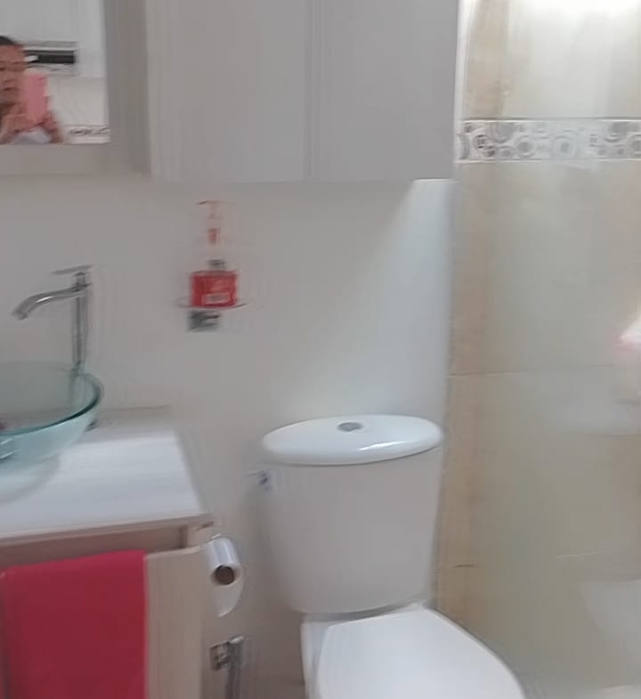 Baño con agua caliente y mueble