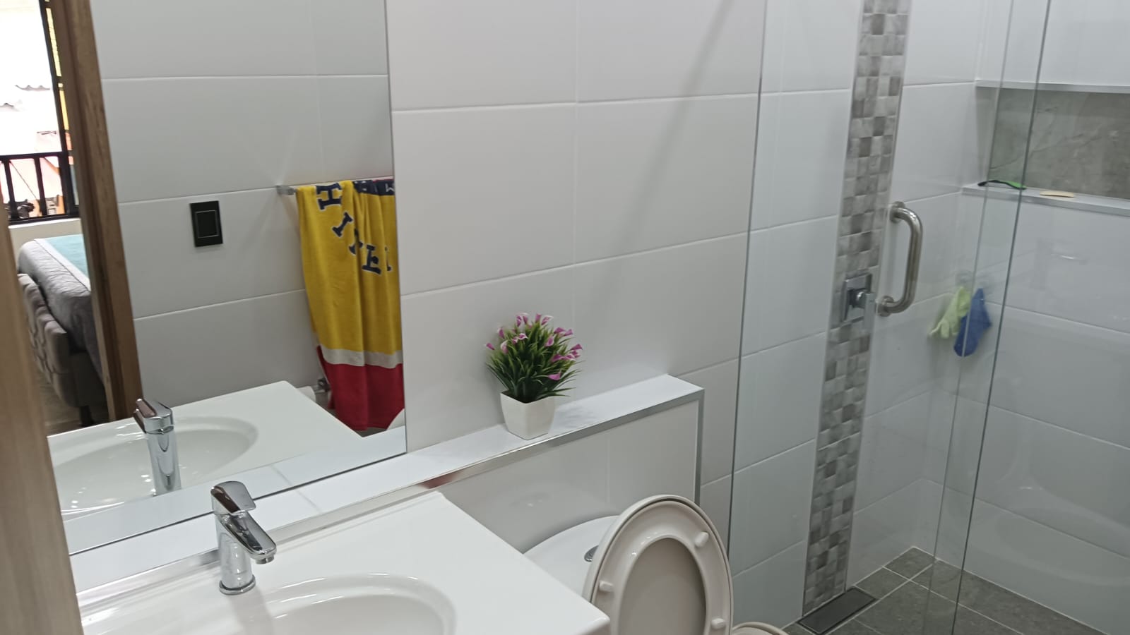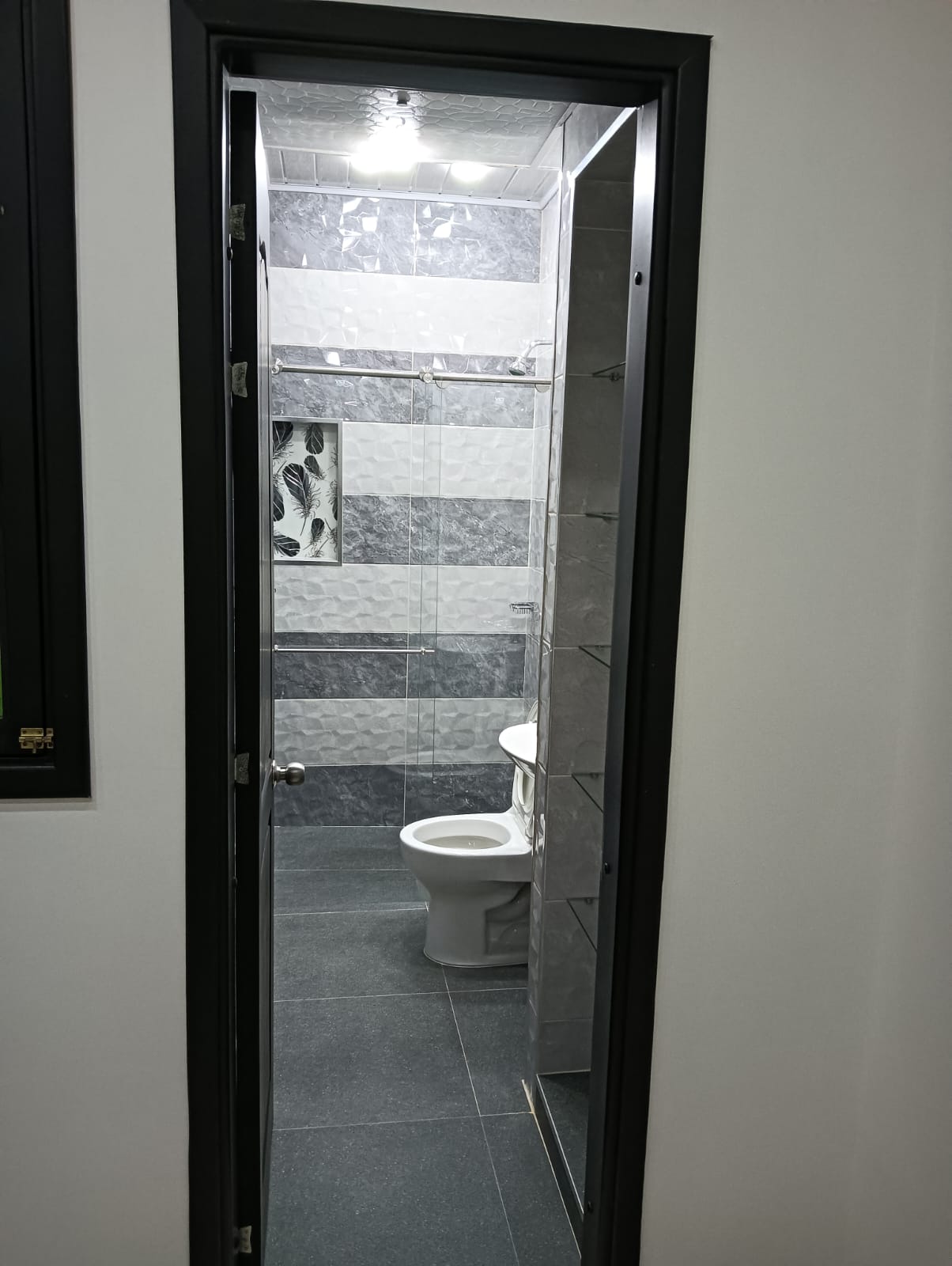 Baño social con división en vidrio templado