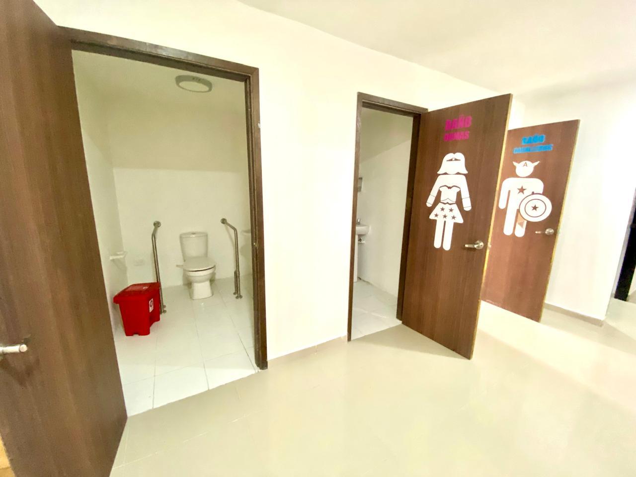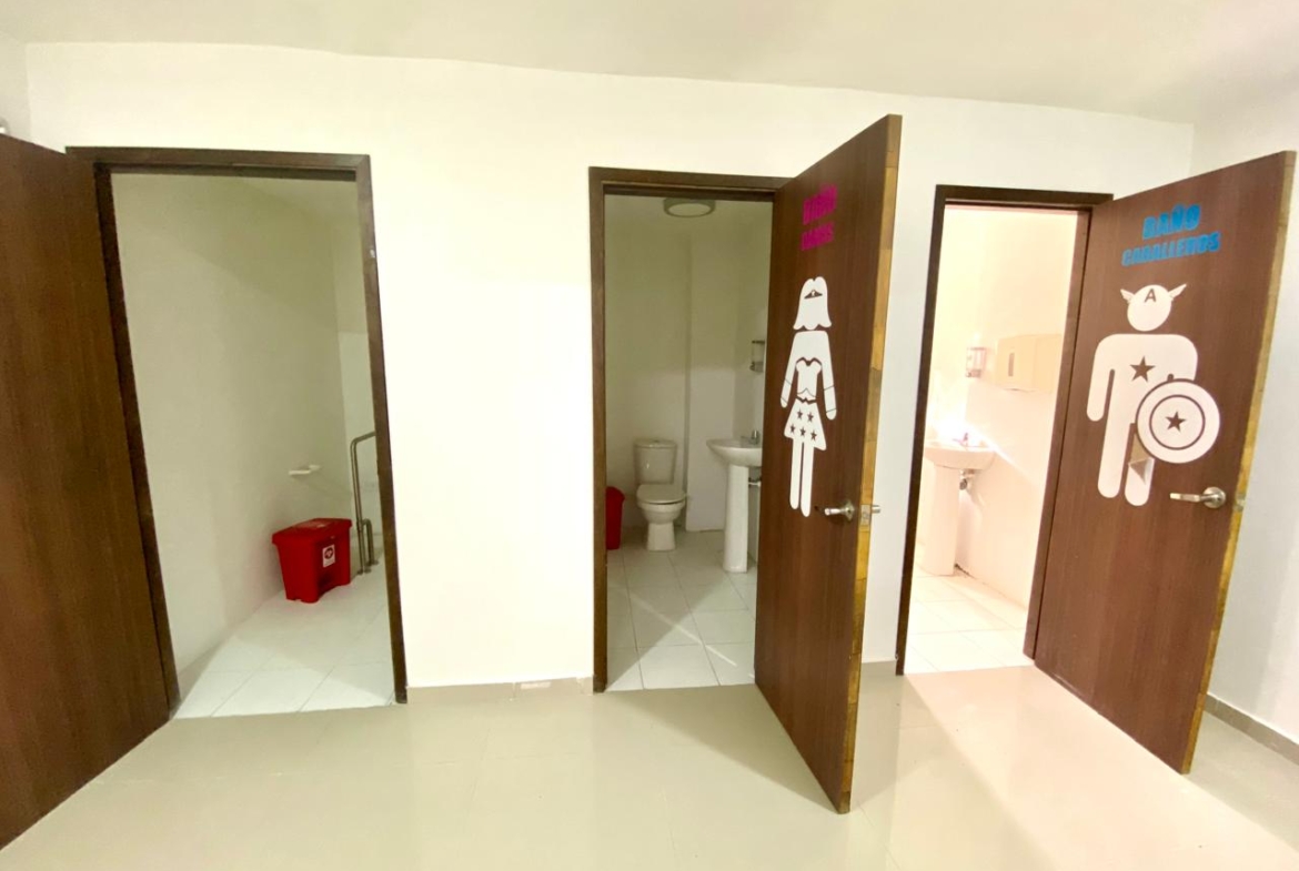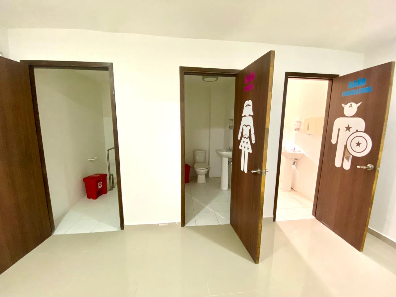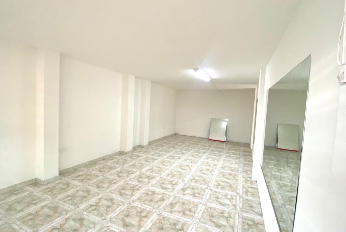 En el primer piso tiene un área de 8 x 27,5 m, acondicionada para consultorios y oficinas, distribuida en 4 consultorios, sala de espera, espacio múltiple ideal para gimnasio, terapias o conferencias, 3 baños, patio, bodega, recepción, oficinas y cocineta.