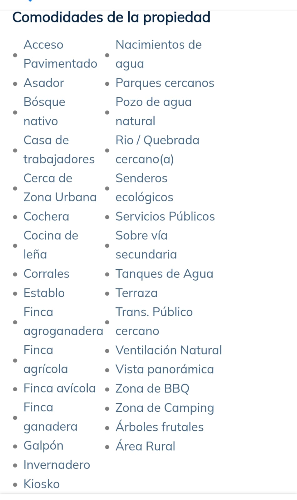 Comodidades de la propiedad