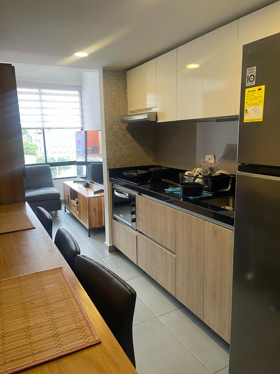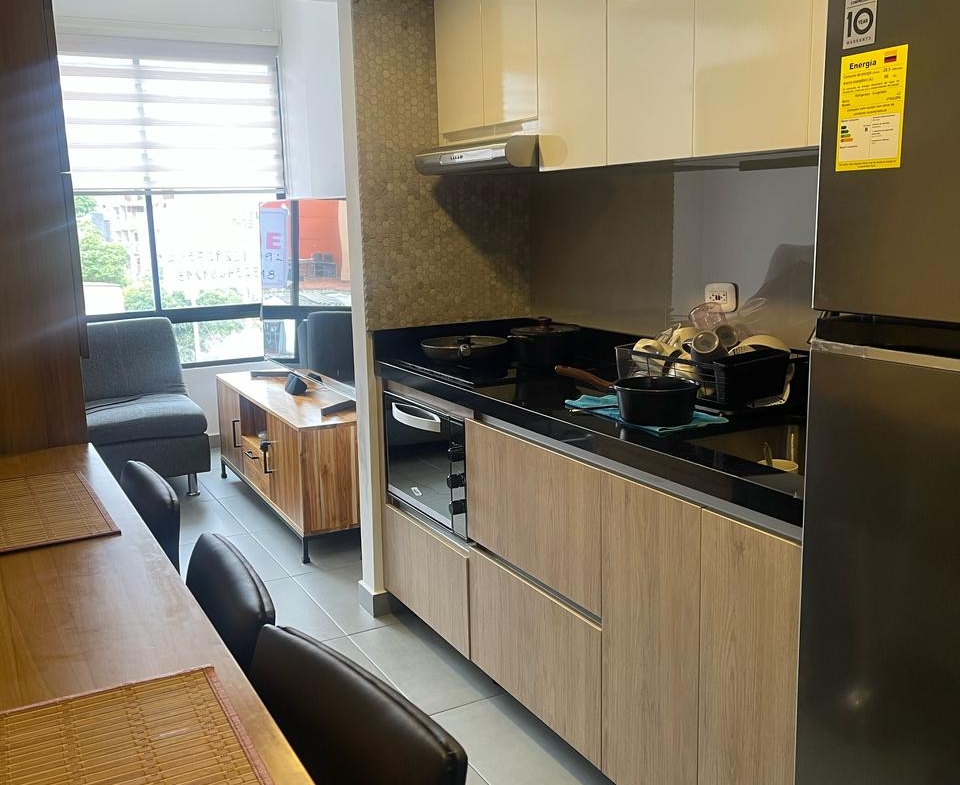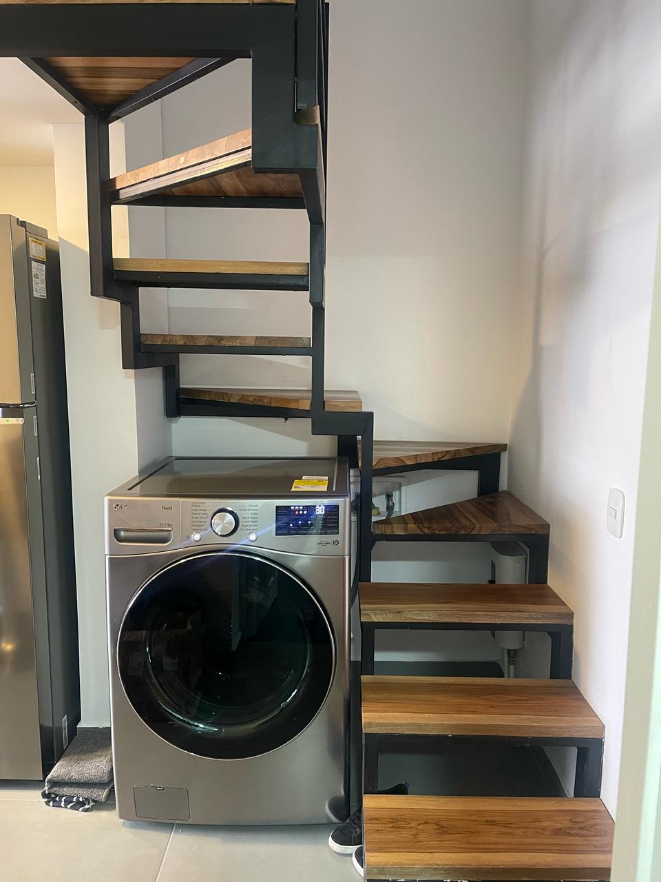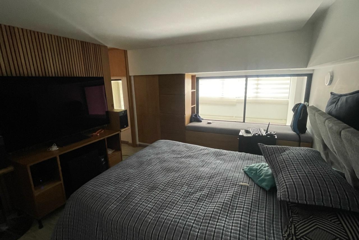 Hermoso apartamento duplex de 2 habitaciones 2 baños, con balcón acabados en madera, remodelado desde planos. Primer piso una habitación, baño, cocina lineal, acabados en madera, cajones modernos, estufa de inducción, sala, balcón y escaleras en madera. Segundo piso habitación con baño, walking clóset, estudio y cajones en madera