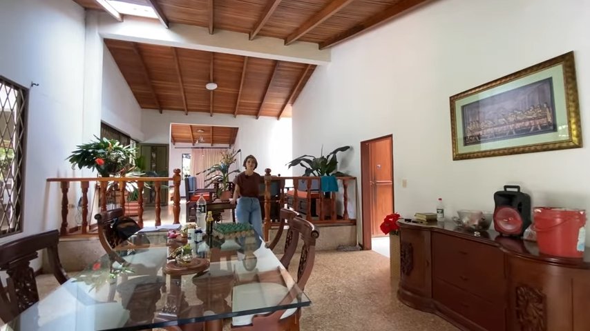 Sala, comedor y biblioteca