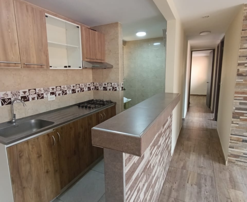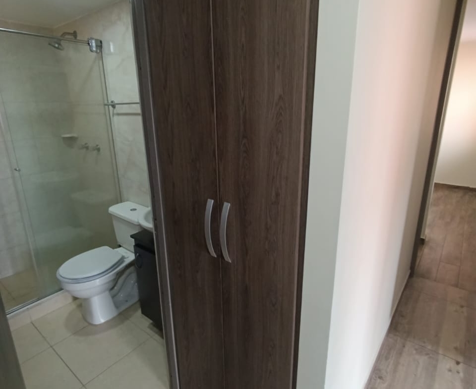 Hermoso apartamento con 3 alcobas, 2 baños con closet adicional, sala comedor con balcón cocina integral a gas con barra aux, zona de lavandería encortinado, amplias zonas vers BBQ,parque infantil GYM, zona pets, piscina.