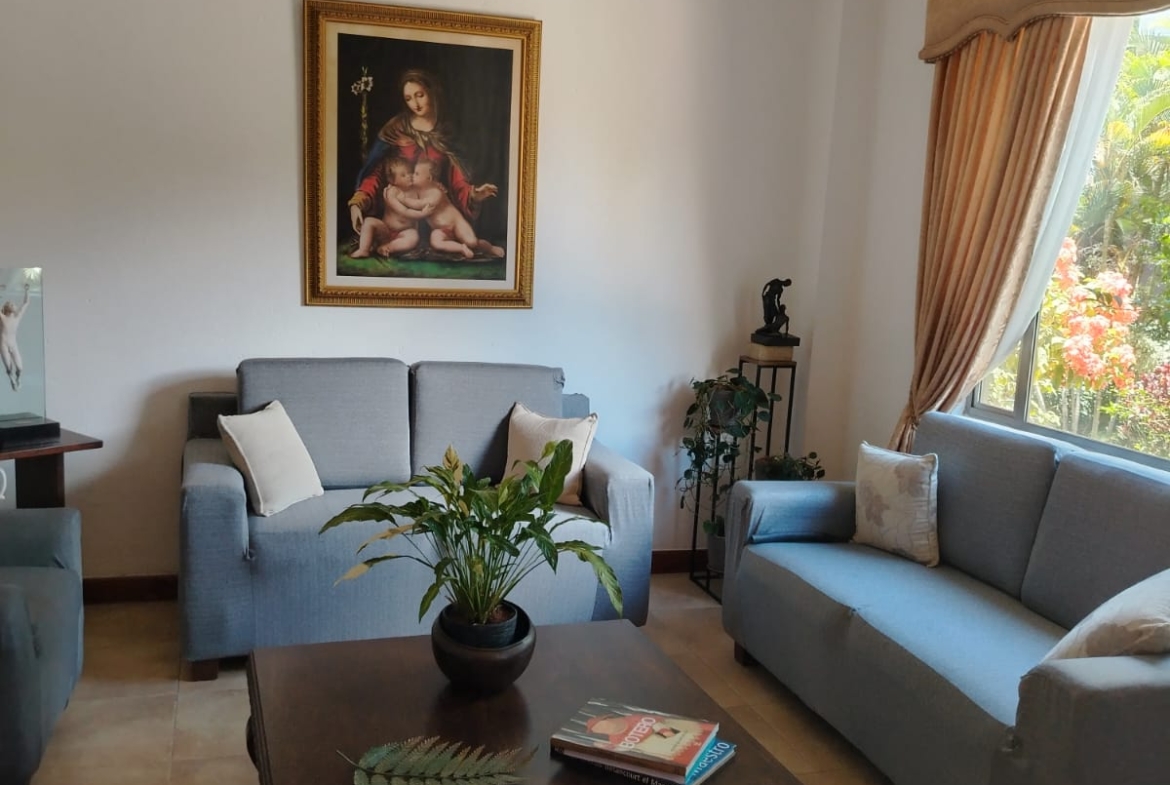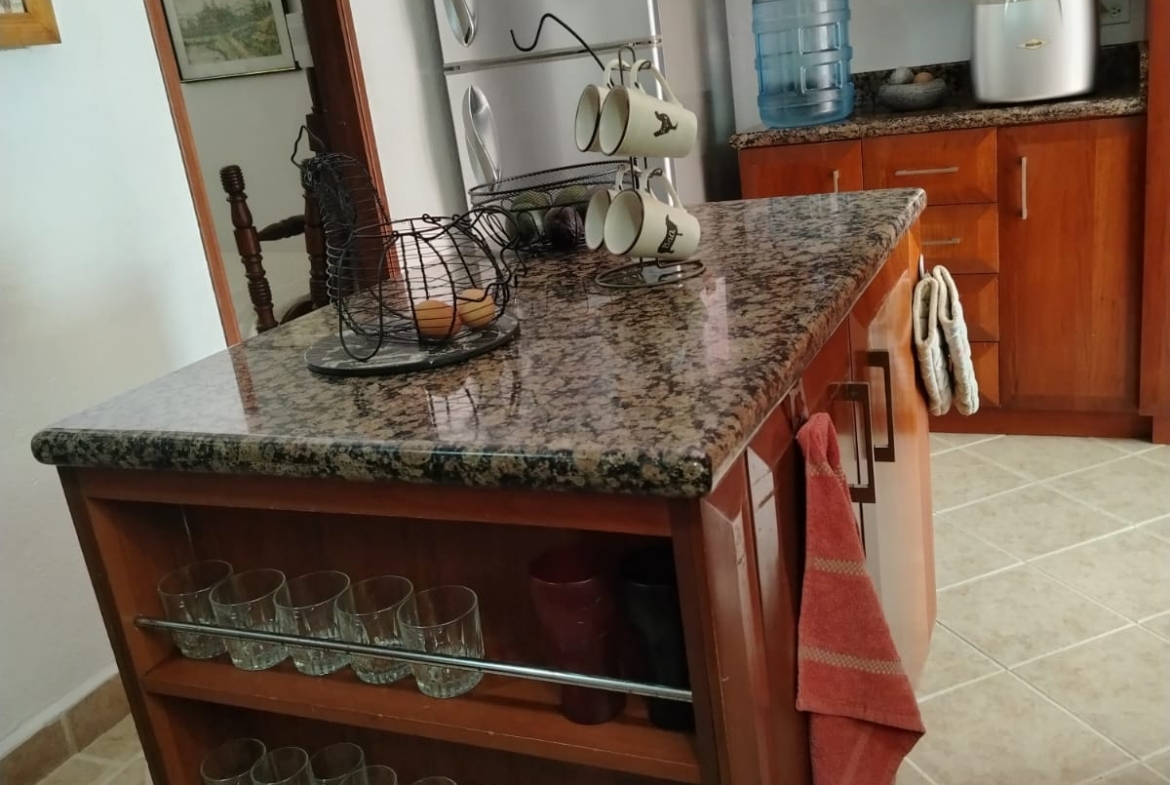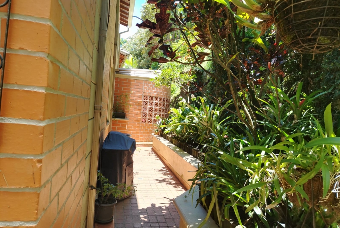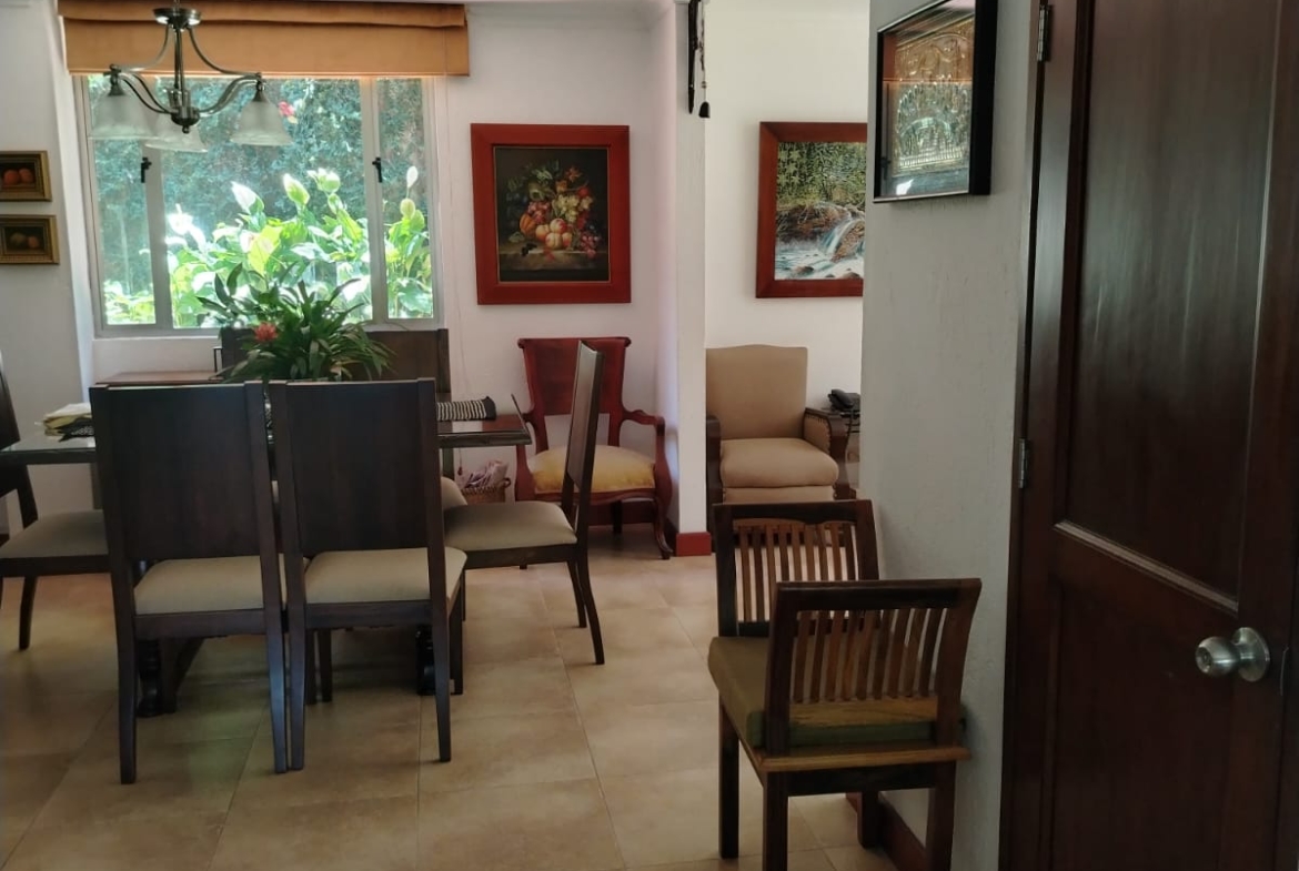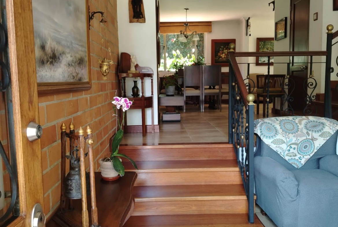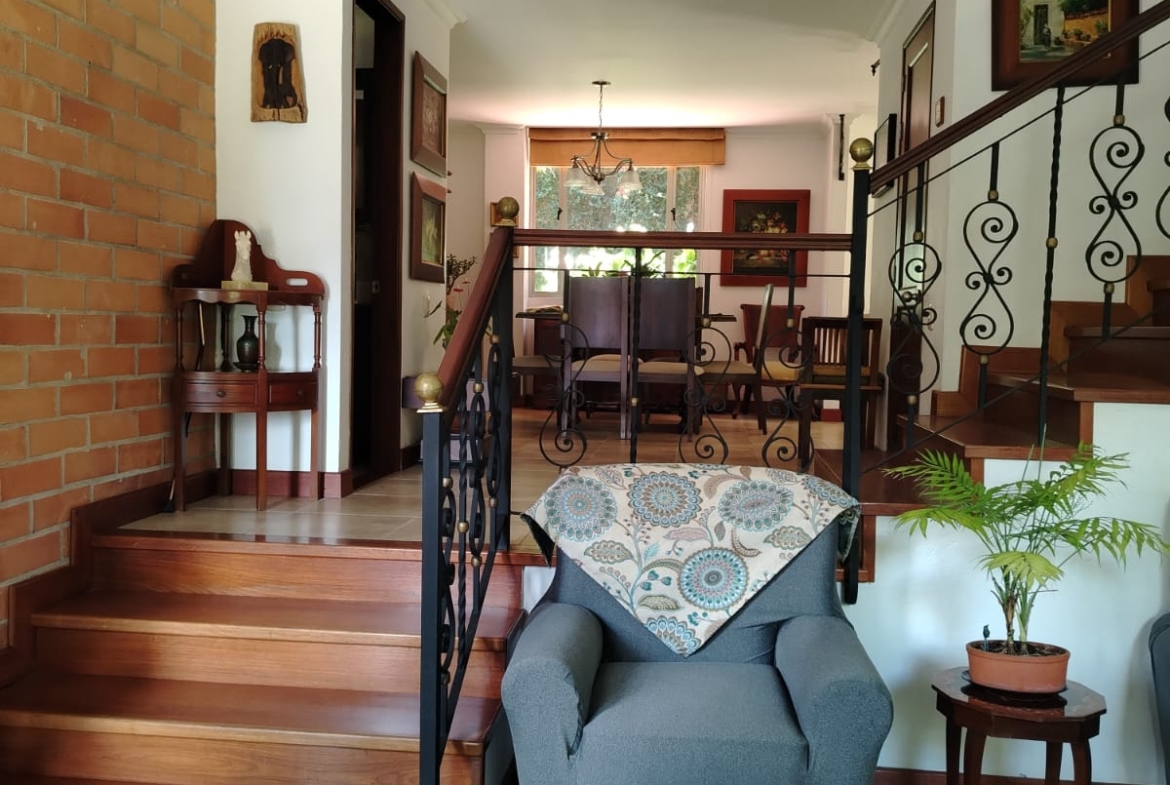 Sala independiente, comedor independiente, baño social completo, amplia sala de estar, patio con zona verde y jardín, patio de ropas, cocina abierta con isla, cuarto útil y habitación de servicio con baño privado.