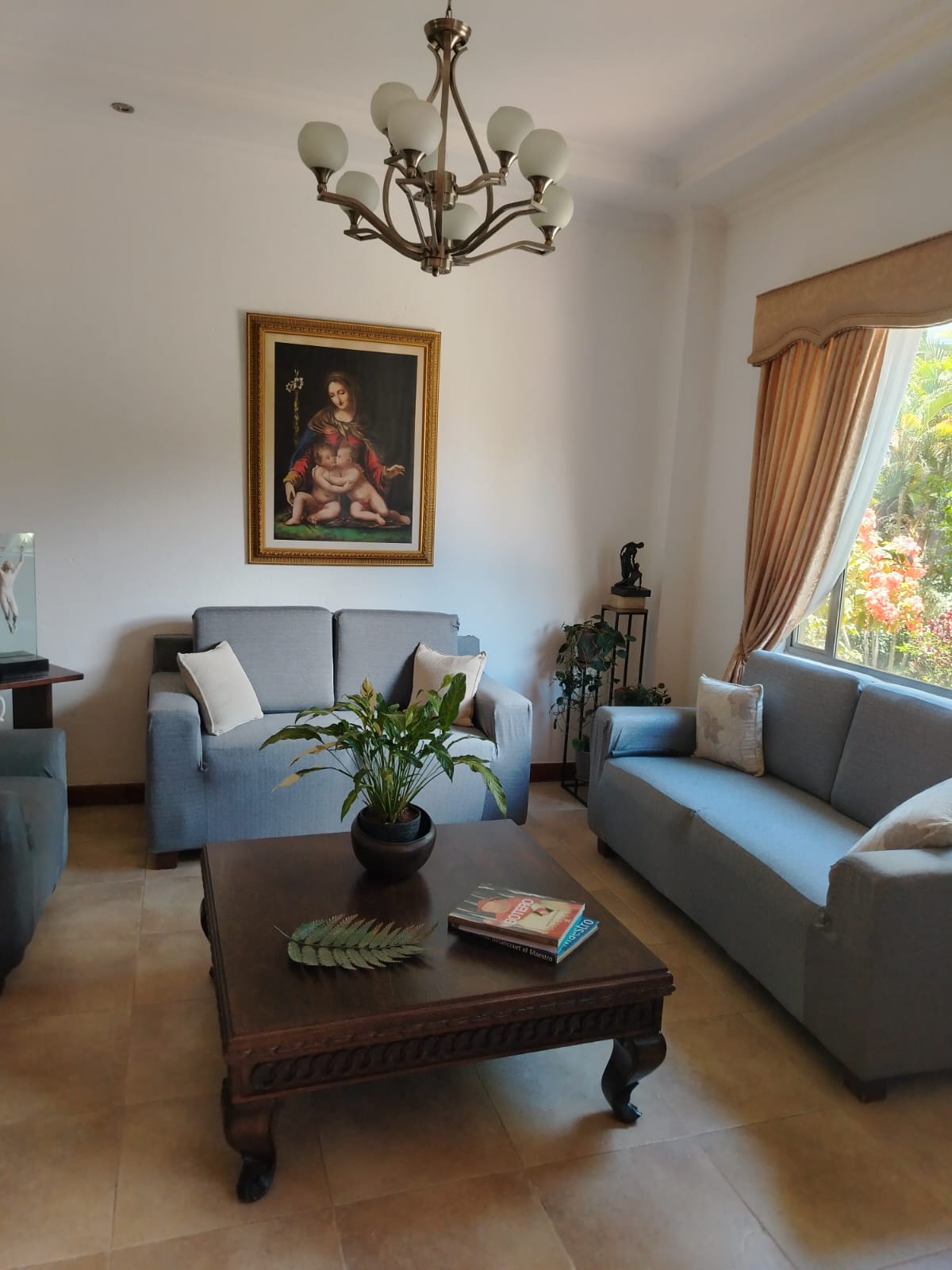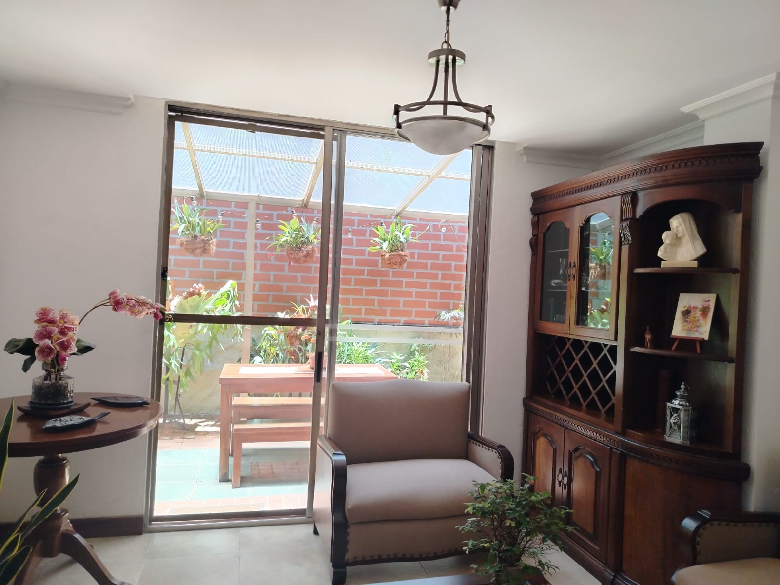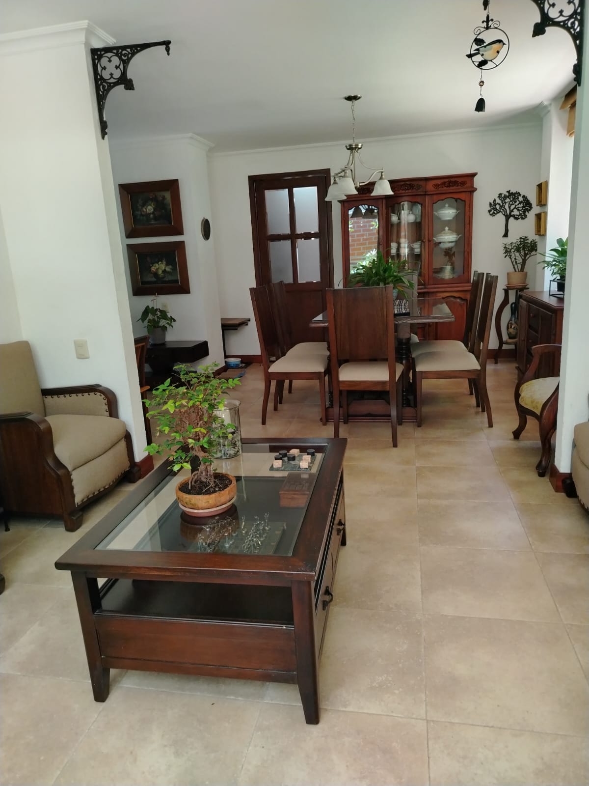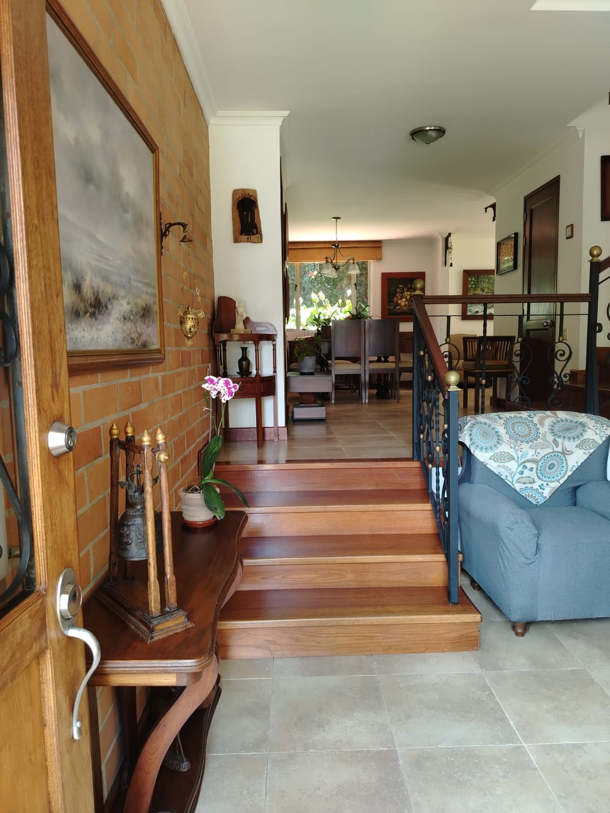 Sala independiente, comedor independiente, baño social completo, amplia sala de estar, patio con zona verde y jardín, patio de ropas, cocina abierta con isla, cuarto útil y habitación de servicio con baño privado.