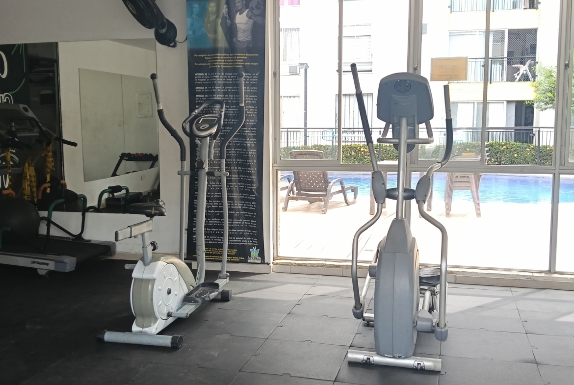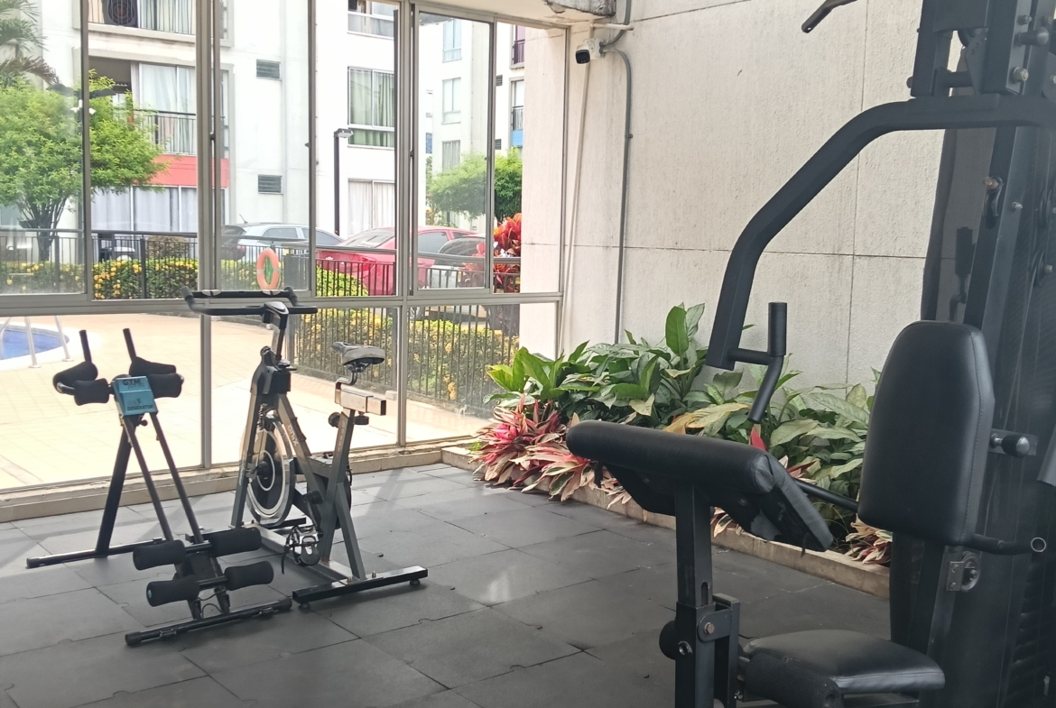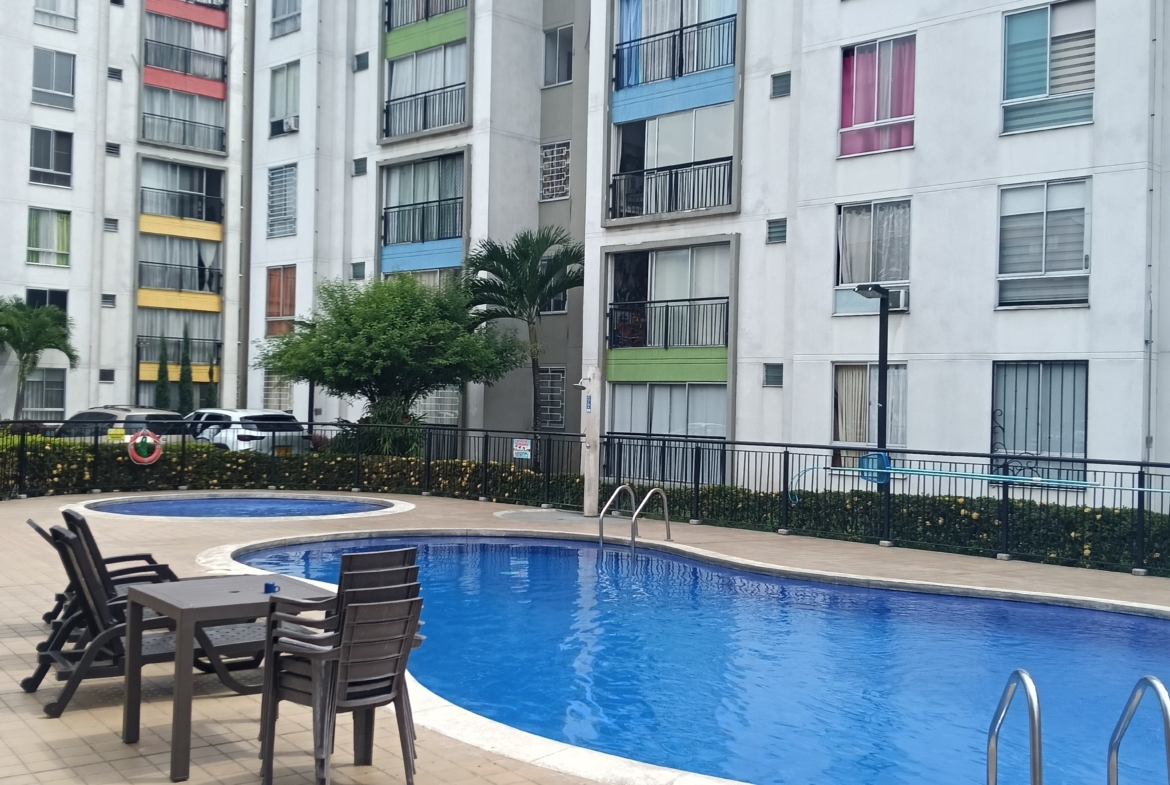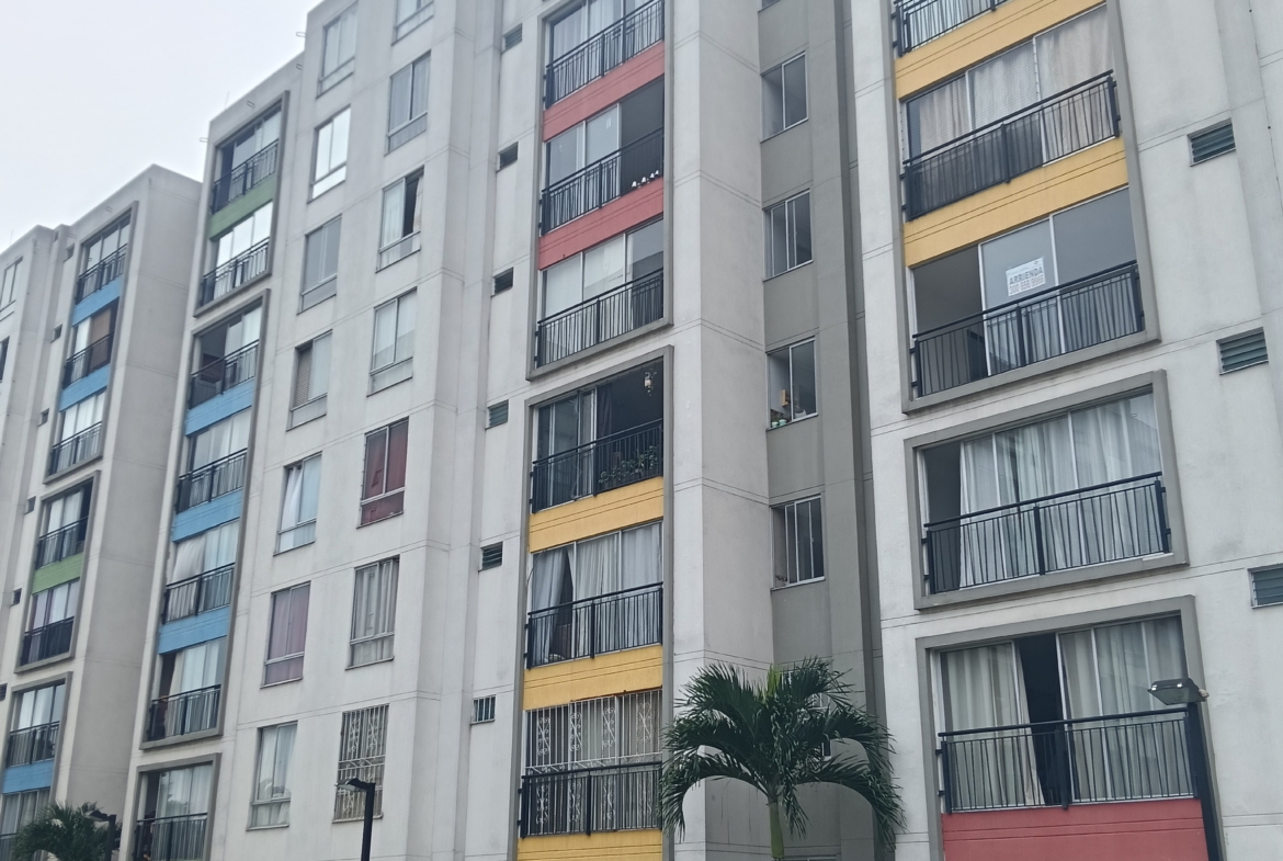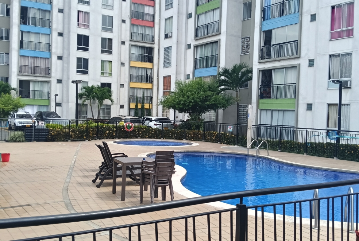 SE VENDE APARTAMENTO en el conjunto LA FARFALE, octavo piso con ascensor, consta de; sala comedor con un gran ventanal con vista al exterior, cocina integral con un completo juego de gabinetes, zona de oficios, tres habitaciones, la principal con baño, un segundo baño de alcobas, tiene 60 m2. La unidad tiene piscina para adultos y niños, zona infantil, salón social, GYM, parqueadero comunitario, vigilancia 24 horas, fácil acceso, cerca de supermercados y transporte público.