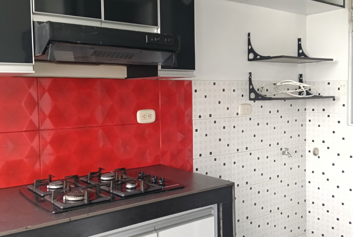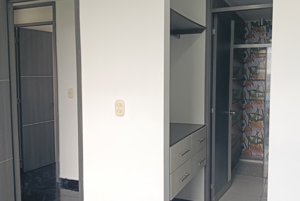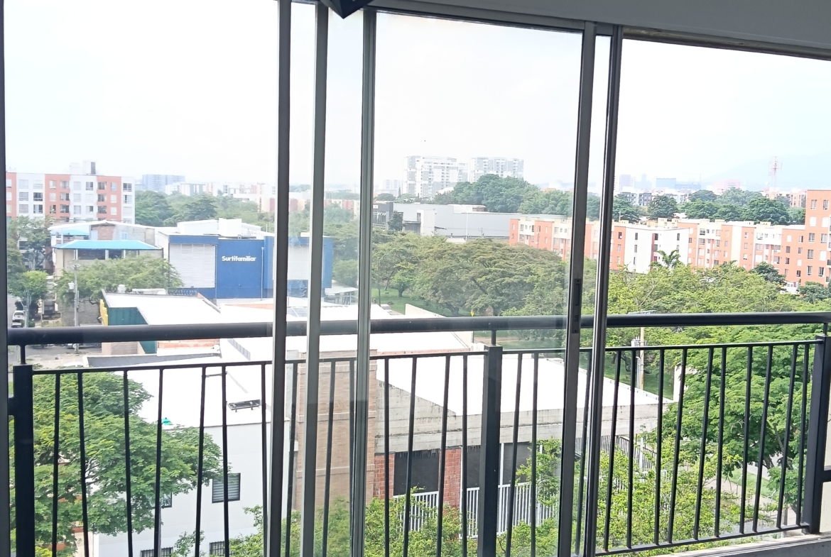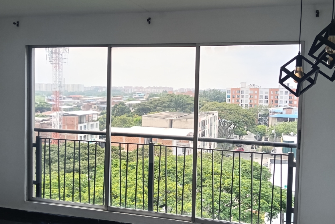 SE VENDE APARTAMENTO en el conjunto LA FARFALE, octavo piso con ascensor, consta de; sala comedor con un gran ventanal con vista al exterior, cocina integral con un completo juego de gabinetes, zona de oficios, tres habitaciones, la principal con baño, un segundo baño de alcobas, tiene 60 m2. La unidad tiene piscina para adultos y niños, zona infantil, salón social, GYM, parqueadero comunitario, vigilancia 24 horas, fácil acceso, cerca de supermercados y transporte público.