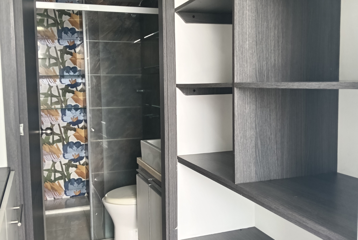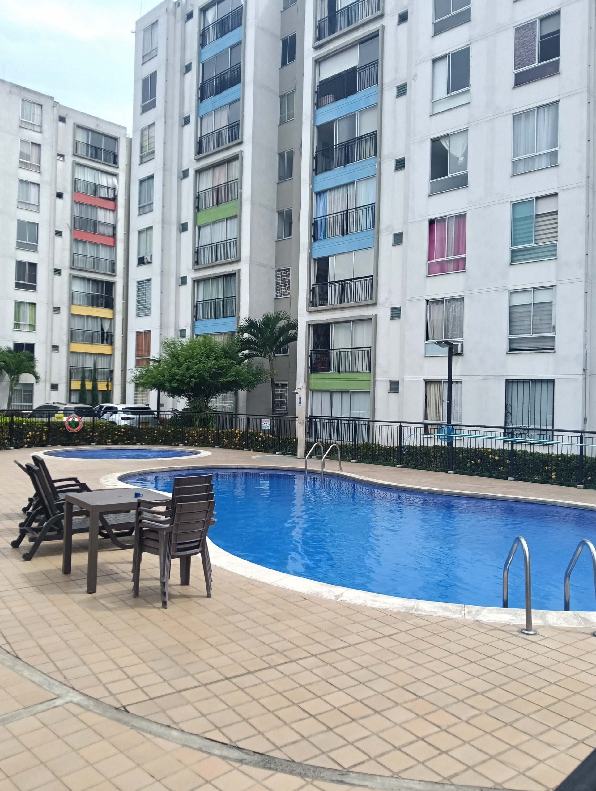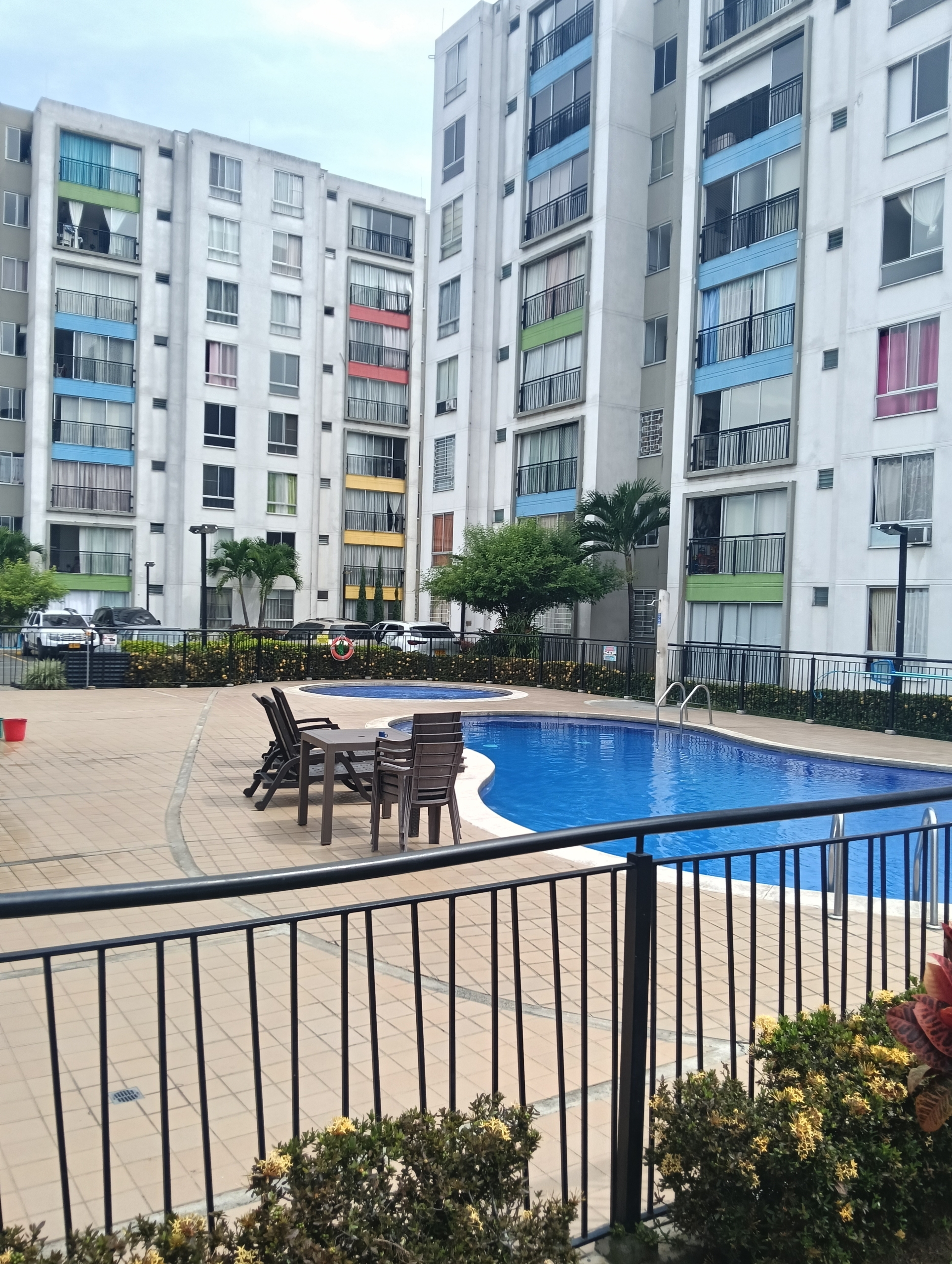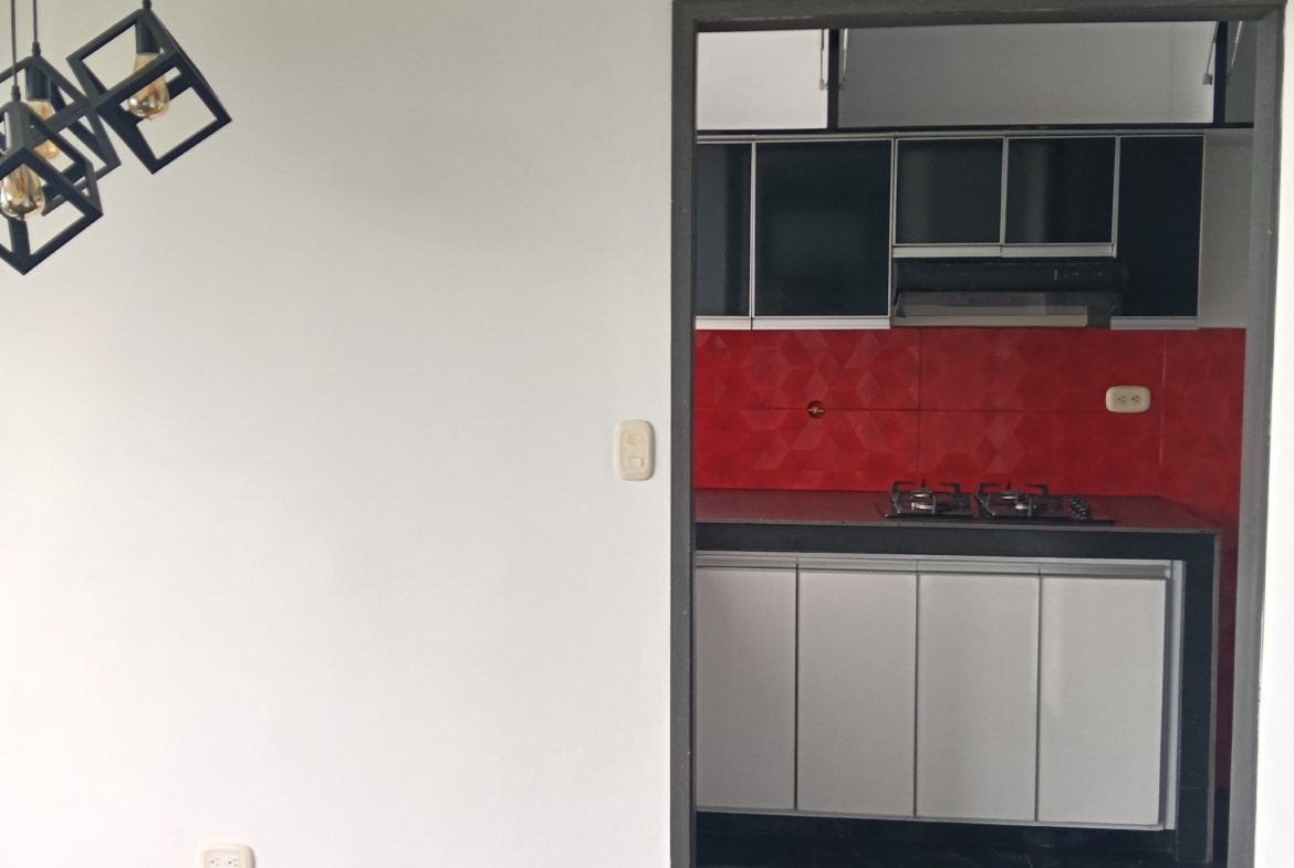 SE VENDE APARTAMENTO en el conjunto LA FARFALE, octavo piso con ascensor, consta de; sala comedor con un gran ventanal con vista al exterior, cocina integral con un completo juego de gabinetes, zona de oficios, tres habitaciones, la principal con baño, un segundo baño de alcobas, tiene 60 m2. La unidad tiene piscina para adultos y niños, zona infantil, salón social, GYM, parqueadero comunitario, vigilancia 24 horas, fácil acceso, cerca de supermercados y transporte público.