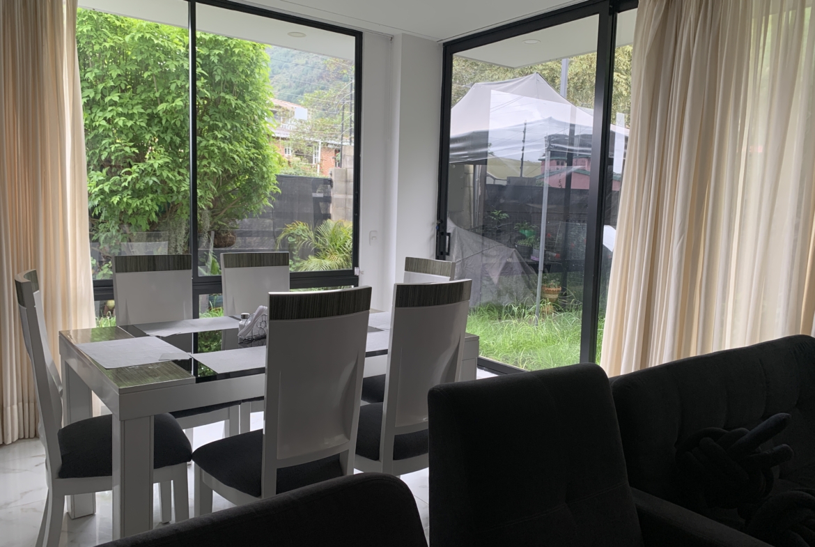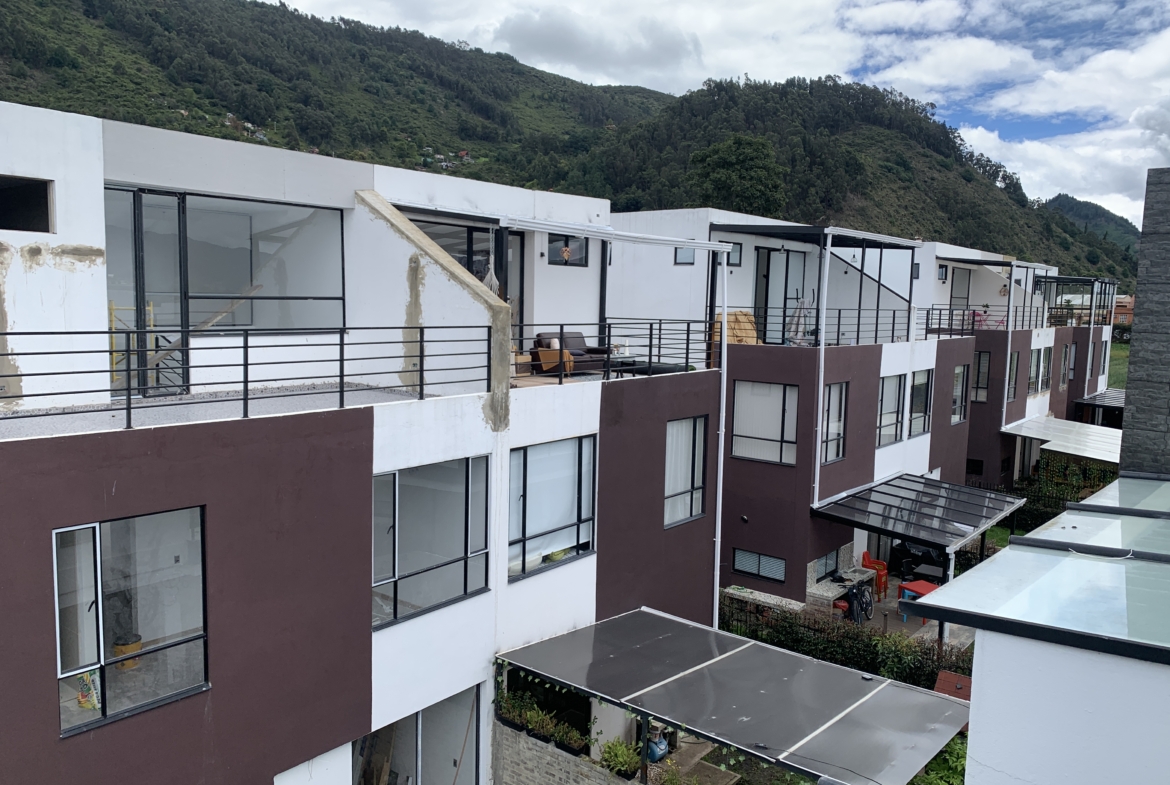 Si esta buscando convivir con la naturaleza, esta casa en condominio de 5 casas, de dos niveles en zona campestre es para usted. Compuesta de tres habitaciones, cuatro baños , dos parqueaderos, chimenea, sala y comedor separados, a cinco minutos de la vía ppal. Cota -Chía. Dotada de paneles solares, ecosostenible, con tanques de agua lluvia, zona de BBQ con asador, patio con jardín, cocina abierta, zona de ropas separada, vista panorámica, terraza doble, balcón y Walking closet en alcoba principal, closets y baños en cada habitación, zona de estudio o computación. Ideal para disfrutar de un hogar con mucha paz, con las comodidades de una casa citadina y lo mejor, el precio negociable y a solo unos minutos del pueblo.