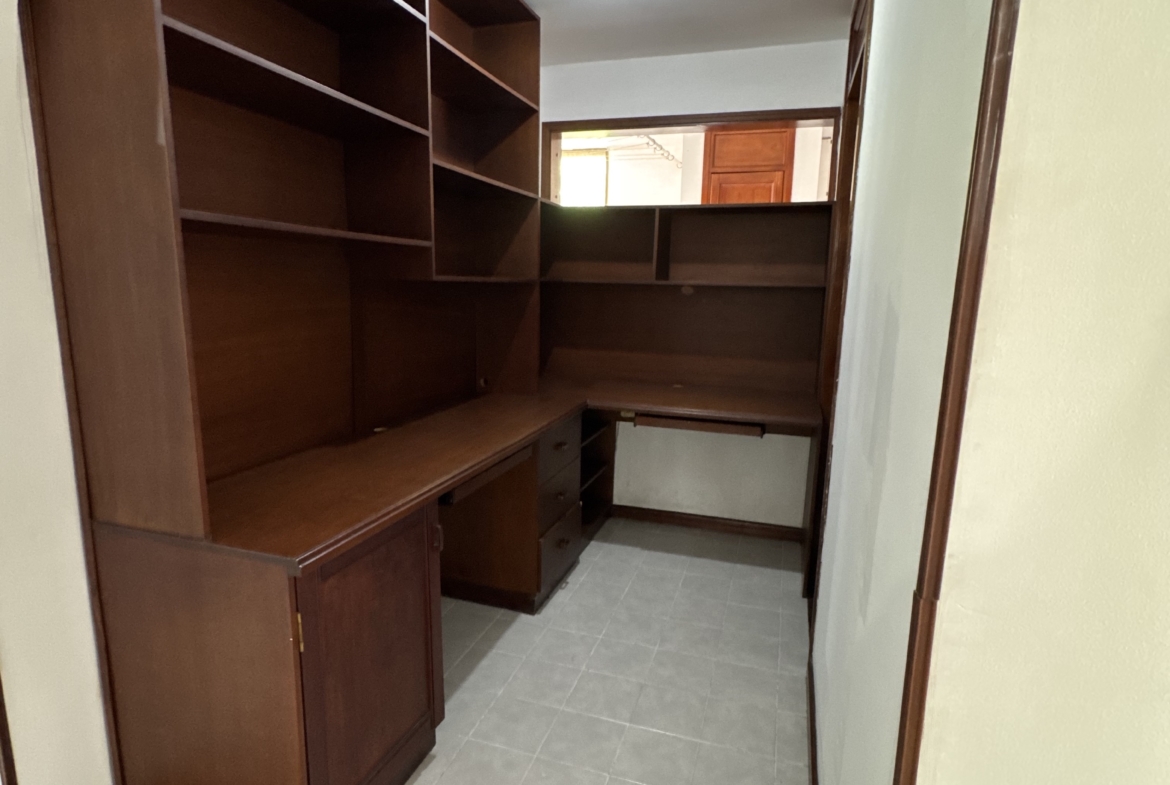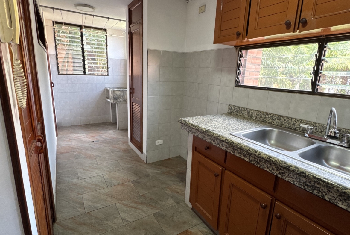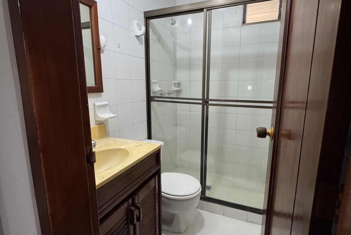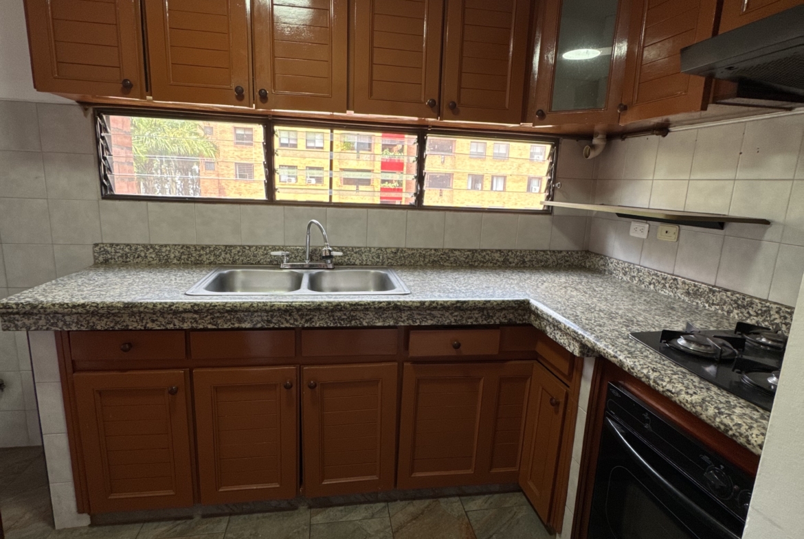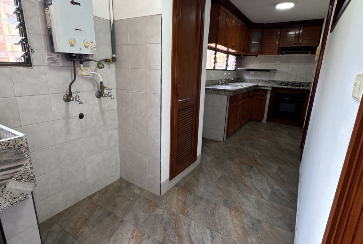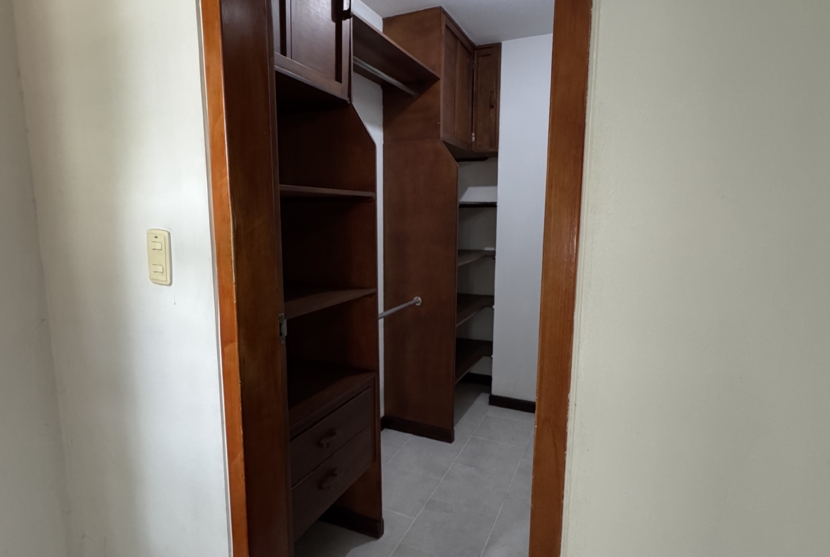 El inmueble cuenta con cocina integral y área de ropas, separada del área social, 1 baño social, 3 habitaciones con closet, la habitación principal cuenta con Vestier y baño completo, en el pasillo cuenta con estudio amoblado de mueble pared, cuenta con baño completo para habitaciones, balcón con puertas de 2 alas . Espacios funcionales, iluminación natural y ambiente acogedor.