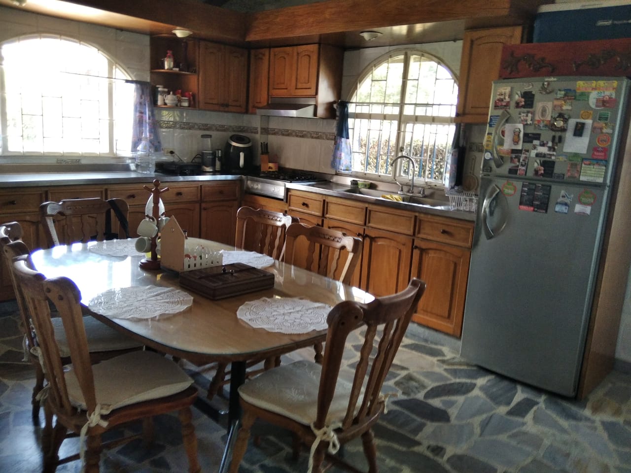 – Amplia sala comedor con chimenea.