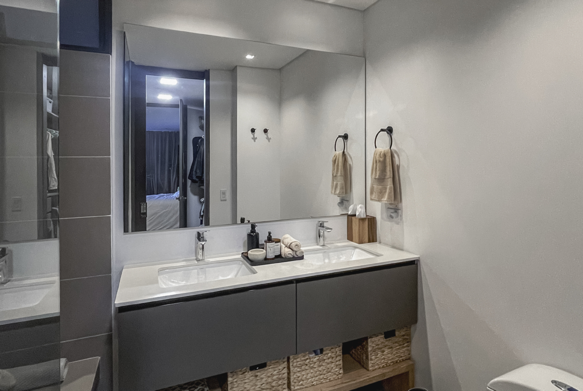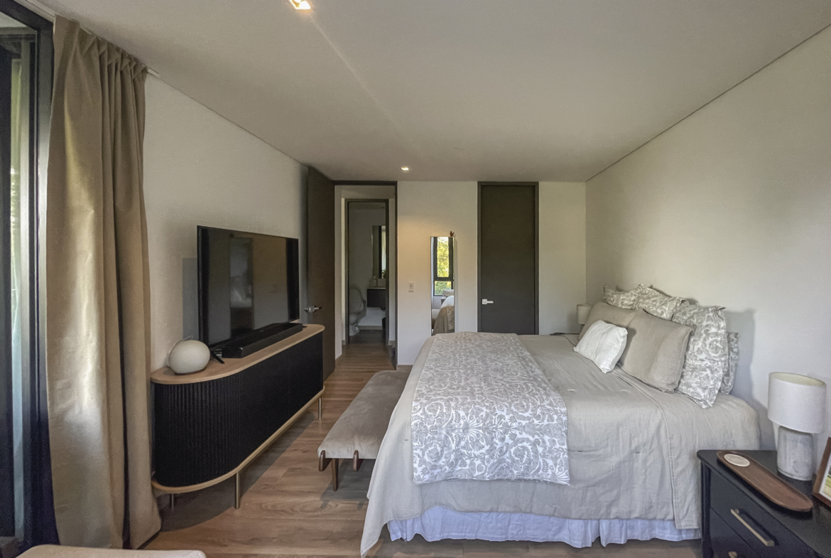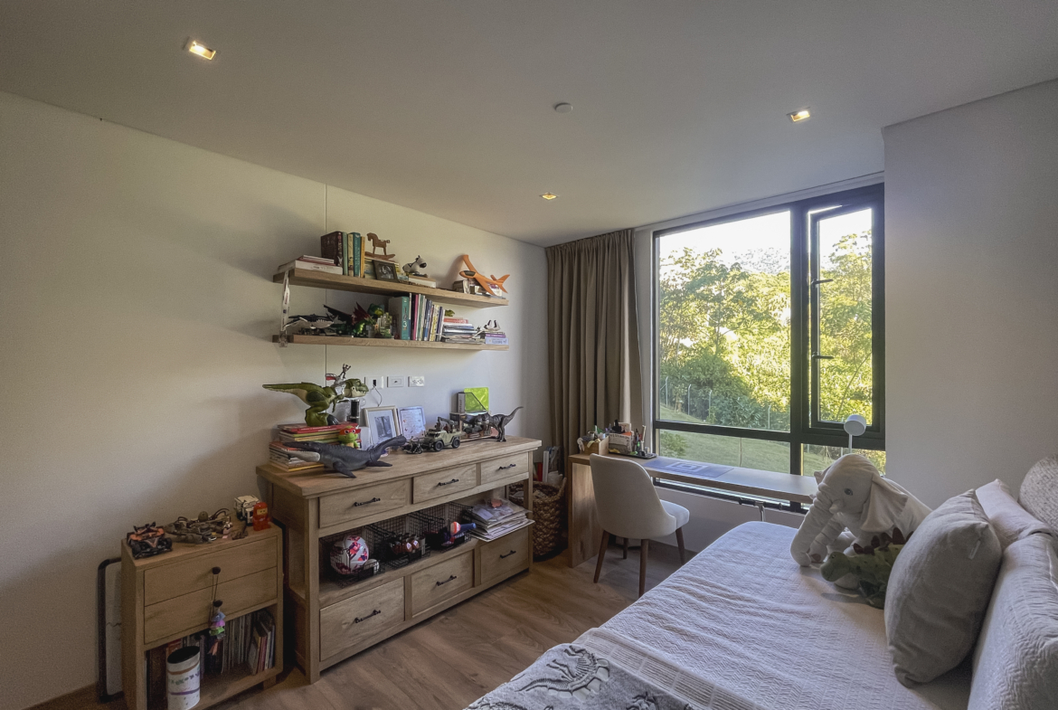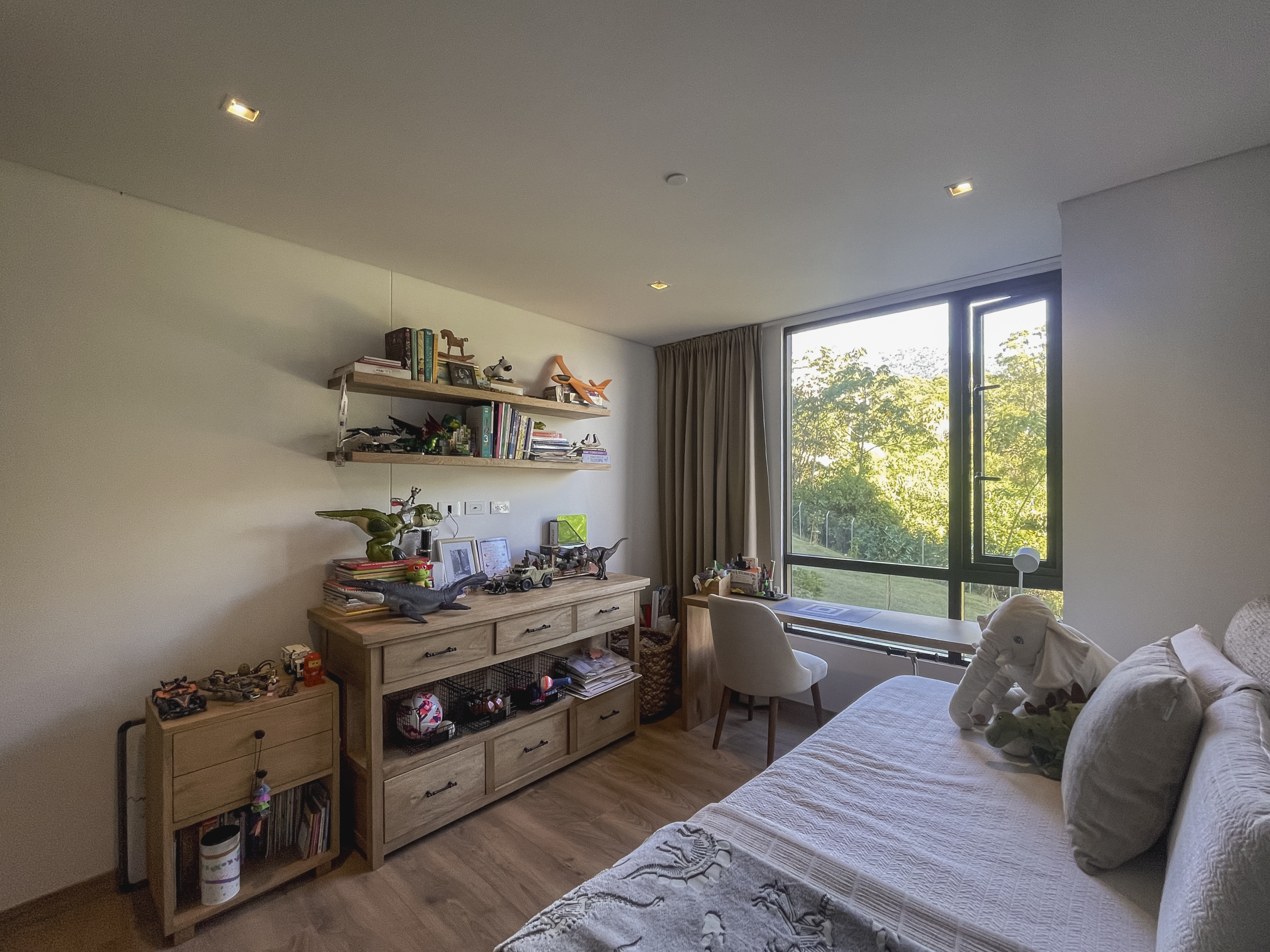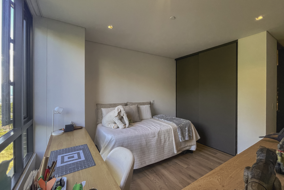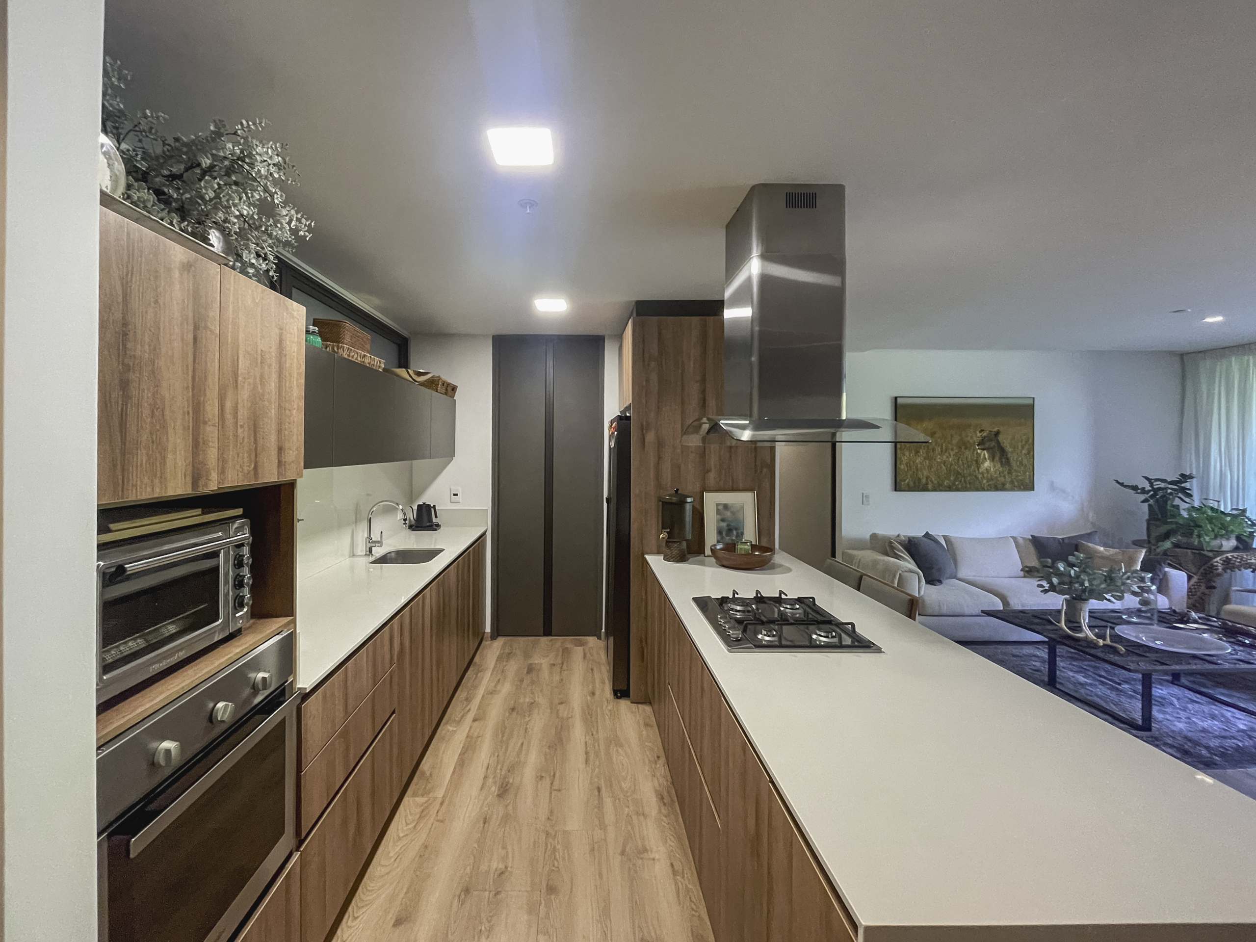 Moderno apartamento ubicado en el sector de las palmas, sitio tranquilo rodeado de naturaleza. Área: 117,5 metros2. Comodidades: sala, comedor, cocina abierta, zona de ropas, baño social, 2 alcobas con baño, principal con vestier y la otra con clóset, estudio, balcón. 2 parqueaderos, cuarto útil.