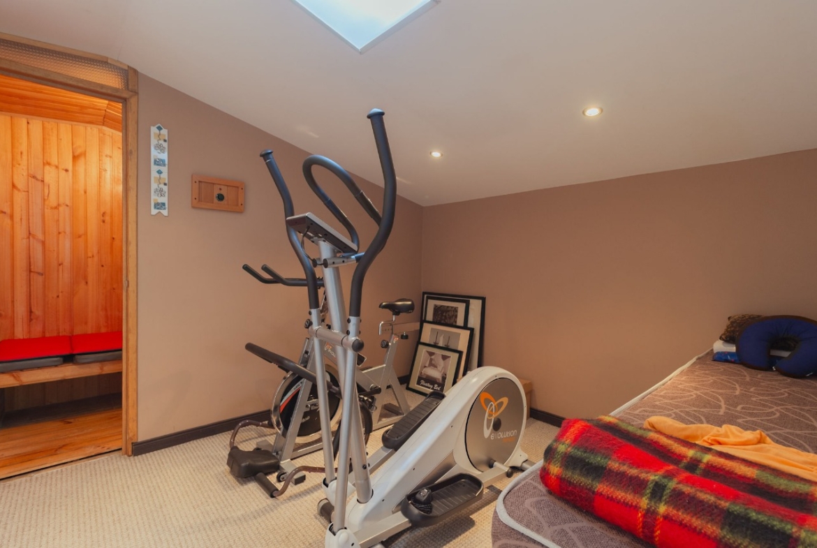 Cuenta con 3 habitaciones, 5 baños, estudio, cuarto y baño de servicio (CBS), depósito y una amplia terraza. Incluye gimnasio, salón de juegos y sala de televisión dentro del apartamento.